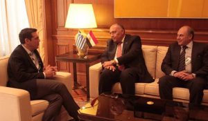 عقد وزير الخارجية سامح شكري لقاءً مع رئيس الوزراء اليوناني أليكسيس تسيبراس الاثنين 24 أبريل 2017 في إطار زيارته الحالية للعاصمة اليونانية أثينا.