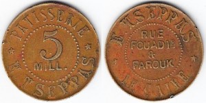 Παράλληλα, δεν θα μπορούσαν να μην υπάρχουν και tokens από ελληνικές επιχειρήσεις της Αιγύπτου. Έτσι, στις φωτογραφίες που συνοδεύουν το κείμενο βλέπουμε την αξίας ενός πιάστρου ¨μάρκα¨ που χρησιμοποιούταν στο αιγυπτιώτικο καφέ-καζινό ¨Πέτρου¨ (¨Εspérance¨) της Αλεξανδρείας τις δεκαετίες ΄20 και ΄30, καθώς και την αξίας 5 μιλιμίων ¨μάρκα¨ του ζαχαροπλαστείου ¨Τσέππας¨ του Καΐρου.
