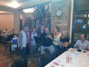 Με εμπνευστή το Γρηγόρη Σαατσόγλου, το βράδυ της Πέμπτης εξελίχθηκε σε μικρή γιορτή, που θύμισε κάτι από τις παλιές «συνάξεις» των Ελλήνων της πόλης. Ο κ. Σαατσόγλου ξεκίνησε να παίζει ξένα και ελληνικά κομμάτια στην κιθάρα και σιγά-σιγά οι παρευρισκόμενοι άρχισαν να τον συνοδεύουν είτε τραγουδώντας είτε τραγουδώντας και χορεύοντας. Έπειτα από ώρα, και προκειμένου να ξεκουραστεί ο κ. Σαατσόγλου, τη «σκυτάλη» στην κιθάρα πήρε ο Τάκης Τρεχαντζάκης.