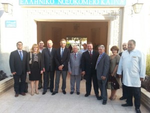 Το Σαββάτο 25 Απριλίου 2015, στο περιθώριο των εκδηλώσεων του Πατριαρχείου Αλεξανδρείας με αφορμή τα Θυρανοίξια της Μονής του Αγίου Γεωργίου Παλαιού Καΐρου, αντιπροσωπεία της Ελληνικής Κοινότητας Αλεξανδρείας, αποτελούμενη από τον Πρόεδρο κ. Γιάννη Παπαδόπουλο, τη Γενική Γραμματέα κα Άρτεμις Γεροντάκη, τους Κοινοτικούς Επιτρόπους κ. Νικόλαο Κατσιμπρή και κ. Δημήτρη Παπαδόπουλο, αλλά και τον Επίτιμο Πρόεδρο της Ε.Κ.Α. κ. Στέφανο Ταμβάκη, επισκέφτηκε το Νοσοκομείο της Ελληνικής Κοινότητας Καΐρου. Τα μέλη της Ε.Κ.Α. υποδέχτηκε ο Πρόεδρος της Ελληνικής Κοινότητας Καΐρου κ. Χρήστος Καβαλής, ο οποίος και ξενάγησε τους επισκέπτες στους χώρους του Νοσοκομείου.