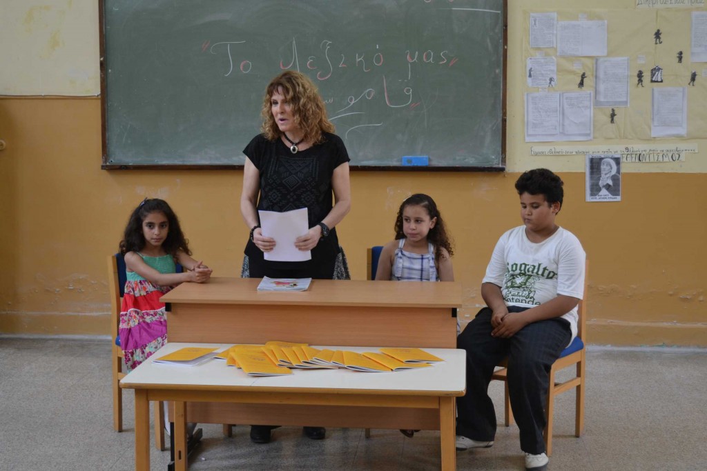 Στην παρουσίαση του λεξικού η επιβλέπουσα δασκάλα κα Σαράτση ευχαρίστησε όλους όσους παρευρέθησαν και κυρίως τον Πρόεδρο της Ε.Κ.Α., τον Έφορο Σχολείων, αλλά και τον κ. Ανδρέα Βαφειάδη (Β’ Αντιπρόεδρο της Ε.Κ.Α.) για την πολύτιμη βοήθεια τους καθόλη τη διάρκεια του εγχειρήματος. Στη συνέχεια έκανε μία σύντομη παρουσίαση του λεξικού, των σταδίων μέχρι την ολοκλήρωση του, τους λόγους, αλλά και τις προσδοκίες της ομάδας. Όπως χαρακτηριστικά αναφέρει στην εισαγωγή του: “Το λεξικό γράφτηκε με την ελπίδα να είναι χρηστικό τόσο σε μικρής ηλικίας μαθητές, όσο και σε μεγαλύτερης και γιατί όχι σε όλους εμάς που ήρθαμε στη φιλόξενη χώρα της Αιγύπτου χωρίς να γνωρίζουμε τη γλώσσα της. Επίλέξαμε λέξεις που θα ήταν χρήσιμες για μια στοιχειώδη επικοινωνία, με το στενότερο ή ευρύτερο αιγυπτιακό περιβάλλον, ενός μαθητή ή μιας μαθήτριας που μόλις έχει έρθει με την οικογένεια του/της από την Ελλάδα, χωρίς να έχουν την παραμικρή γνώση της αραβικής γλώσσας. Βεβαίως υπάρχουν και πολλές άλλες λέξεις που δεν έχουν συμπεριληφθεί στο λεξικό μας, αλλά η ομάδα εργασίας ήταν πραγματικά μικρή τόσο σε αριθμό όσο και σε ηλικία και ως εκ τούτου ο φόρτος εργασίας μεγάλος και δυσανάλογος προς το διαθέσιμο χρόνο διεκπεραίωσης της εργασίας. Για να πετύχουμε το στόχο μας αποφασίσαμε να μεταφράσουμε τις ελληνικές λέξεις στην καθομιλουμένη αραβική γλώσσα (Αμέια), επειδή τα αντίστοιχα λεξικά που κυκλοφορούν στο εμπόριο περιέχουν, κατά κύριο λόγο, λέξεις της καθαρεύουσας (Φόσχα), η οποία και διδάσκεται στα σχολεία, αφού είναι η επίσημη γλώσσα του κράτους”.