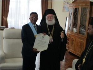 Αποκορύφωση της επισκέψεως του Μακαριωτάτου ήταν η συνάντησις με τον Εξοχώτατον Πρόεδρο της Δημοκρατίας της Μαδαγασκάρης κ. Χέρι Ρατζαοναριμαμπιανίνα την 3η Ιουνίου στο Προεδρικό Μέγαρο.