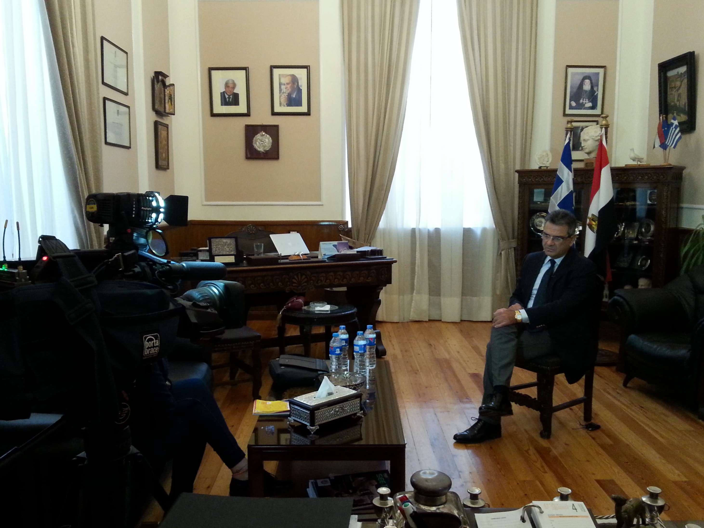 Συνέντευξη στο κανάλι Sky News Arabia και στη δημοσιογράφο Aya Rady παραχώρησε, ο Πρόεδρος της Ελληνικής Κοινότητας Αλεξανδρείας κ. Ιωάννης Παπαδόπουλος. Η συνέντευξη δόθηκε στα πλαίσια ρεπορτάζ της δημοσιογράφου σχετικά με την παρουσία και την δραστηριότητα των Ελλήνων στην Αλεξάνδρεια σήμερα. Μάλιστα η δημοσιογράφος παρευρέθη και στον Αγιασμό των Υδάτων στον Ελληνικό Ναυτικό Όμιλο Αλεξανδρείας.