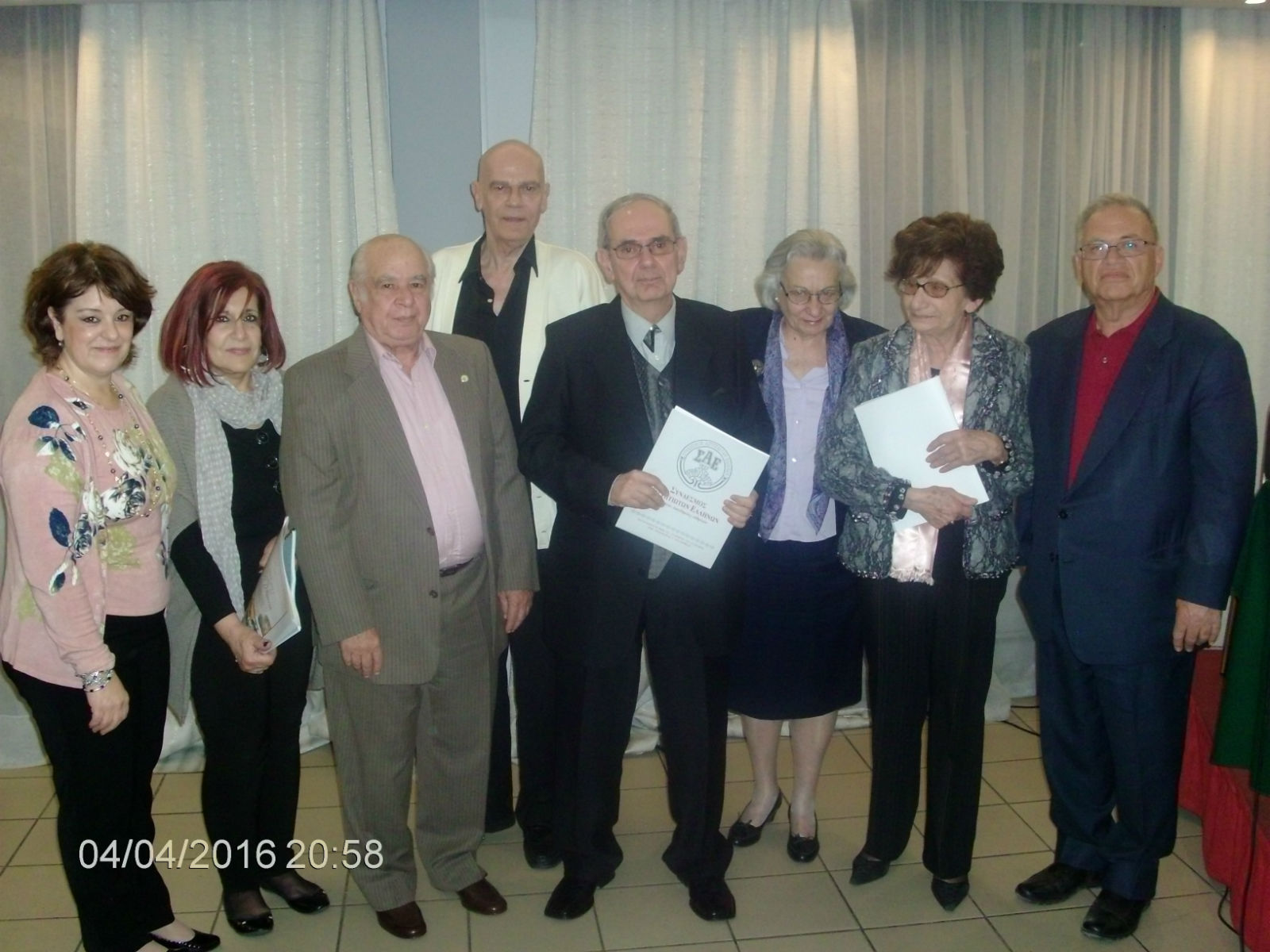 Στο τέλος της εκδήλωσης το Διοικητικό Συμβούλιο του Συνδέσμου προσέφερε τιμητικές πλακέτες και ευχαριστήρια διπλώματα στους κ. κ. Ιούλιο Κέρπη και Μάρω Φιλίππου.