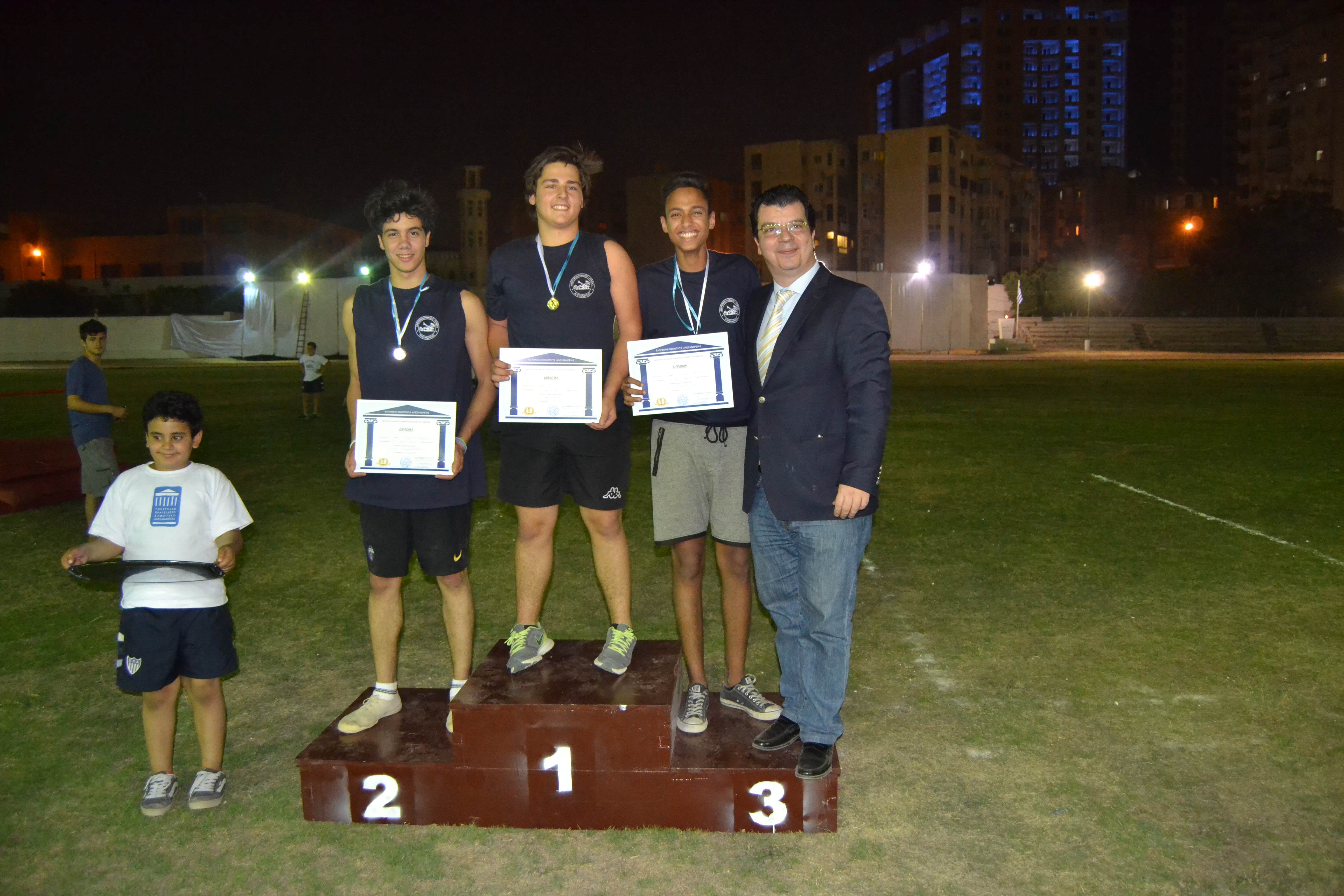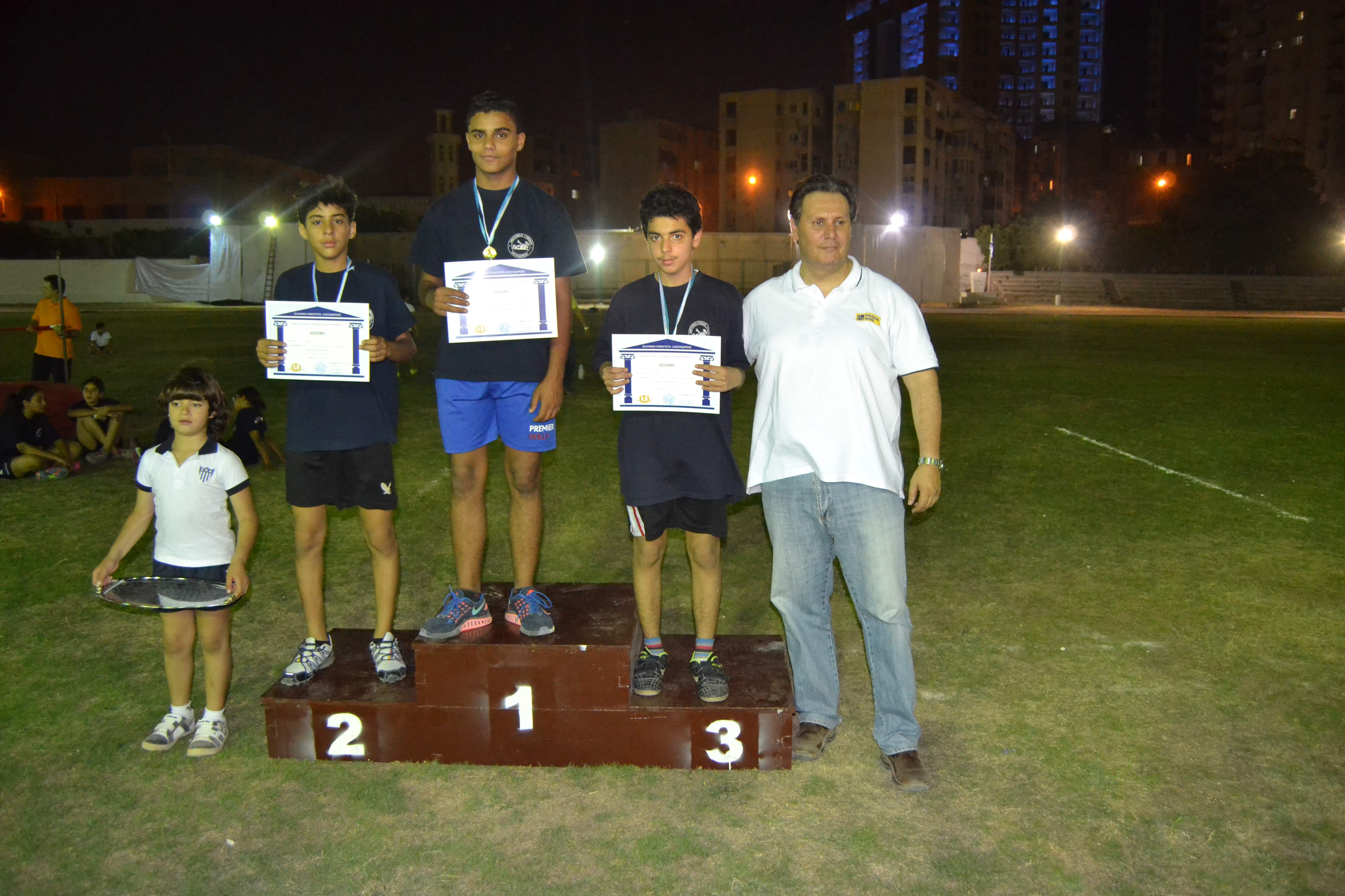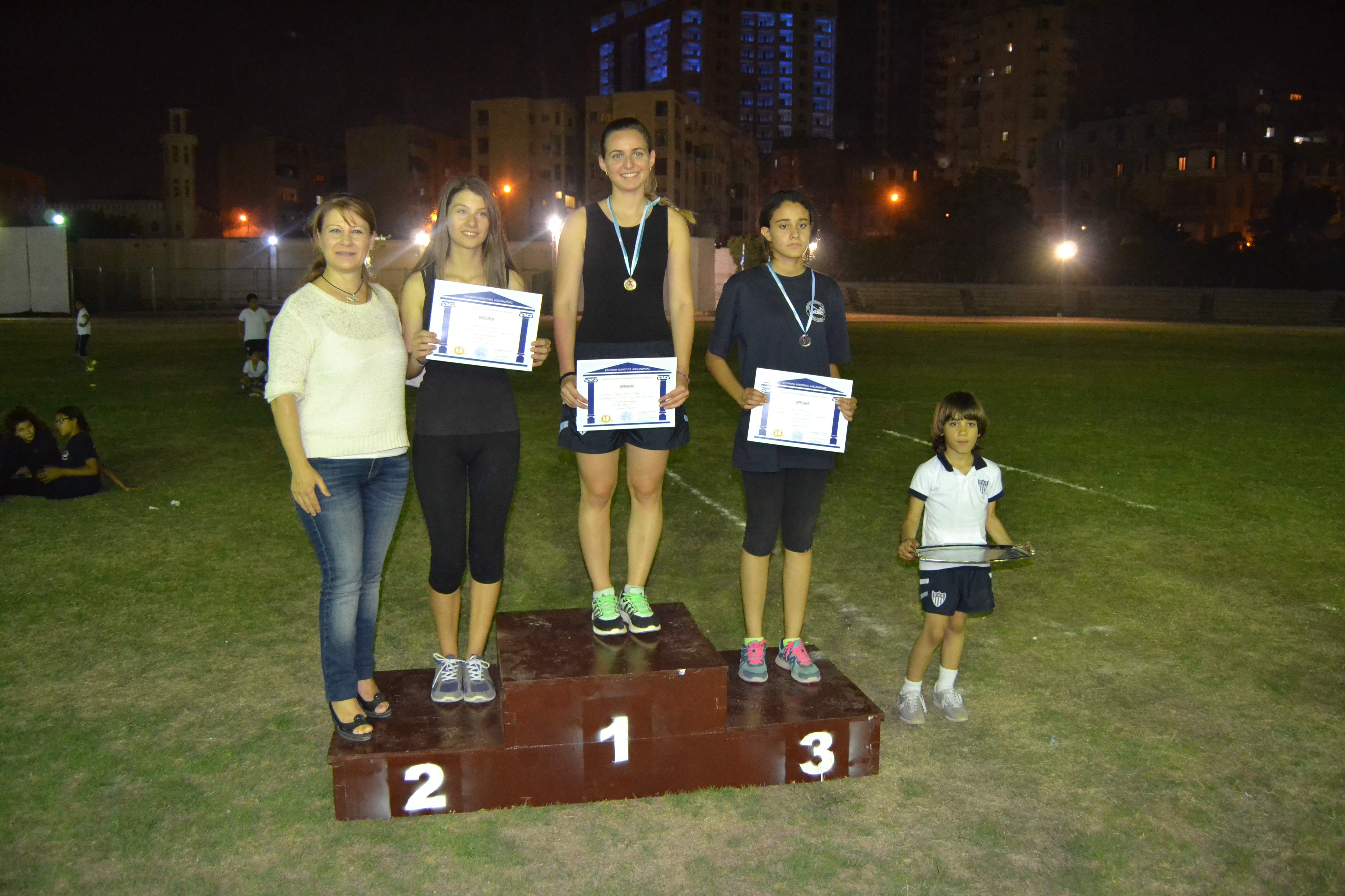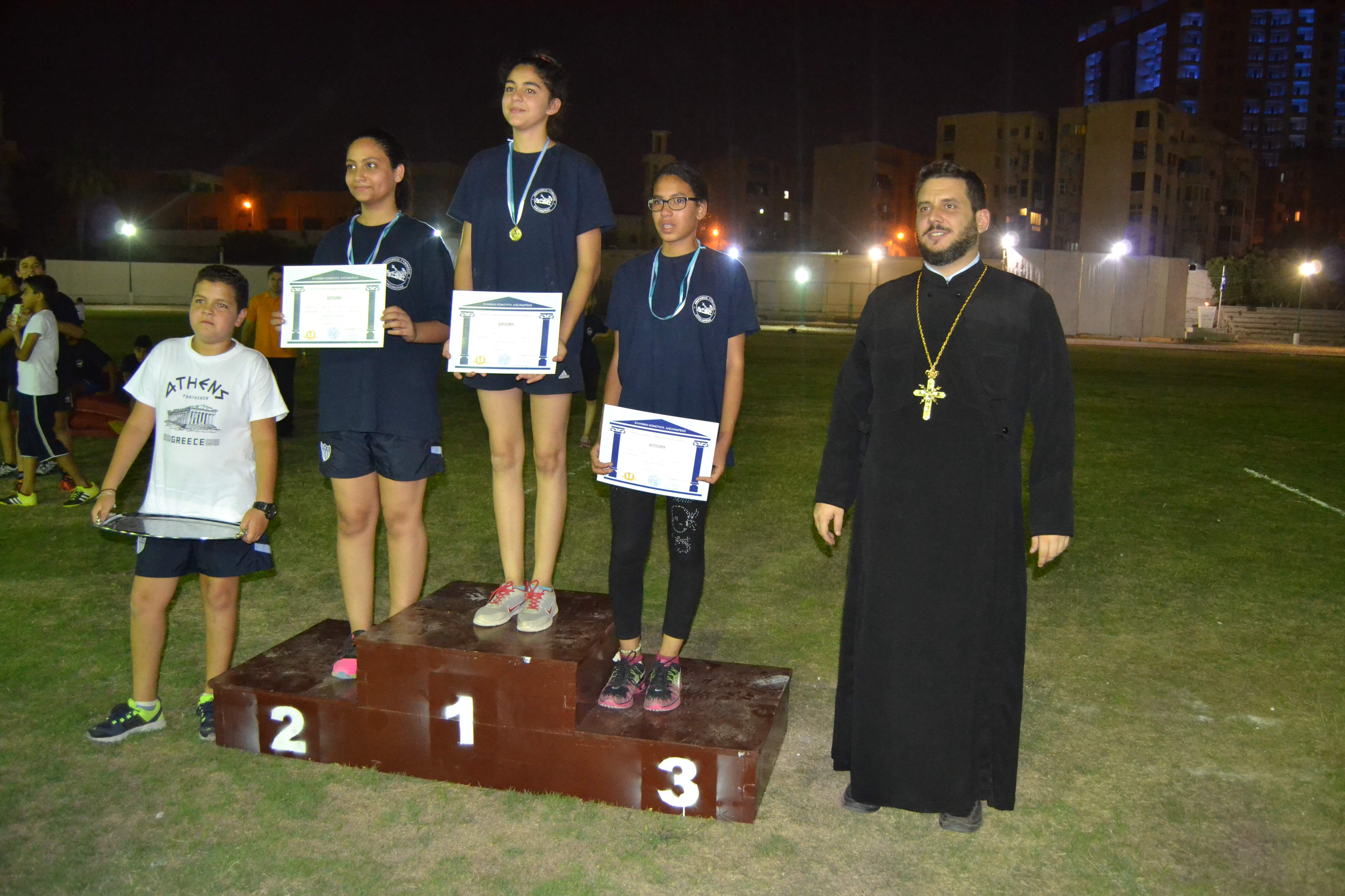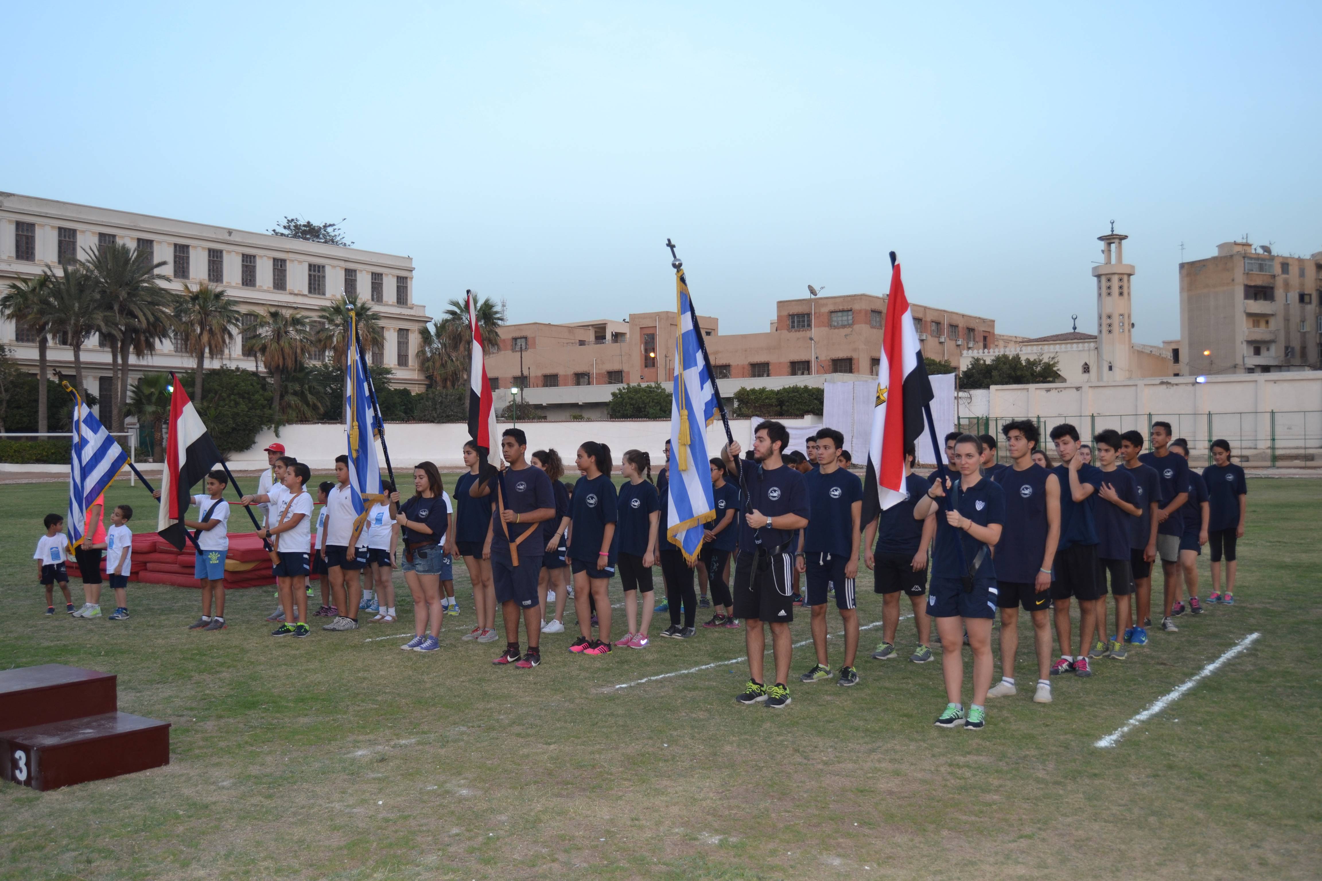 Οι μαθητές είχαν συγκεντρωθεί από νωρίς το απόγευμα για να ξεκινήσουν την προθέρμανση τους και να προετοιμαστούν για τα αγωνίσματα στα οποία θα συμμετείχαν. Στις έξι και μισή το απόγευμα δόθηκε η έναρξη των αγώνων από τον Β’ Αντιπρόεδρο της Ελληνικής Κοινότητας Αλεξανδρείας κ. Ανδρέα Βαφειάδη. Αθλητές και κριτές έλαβαν τις θέσεις τους στο γήπεδο.