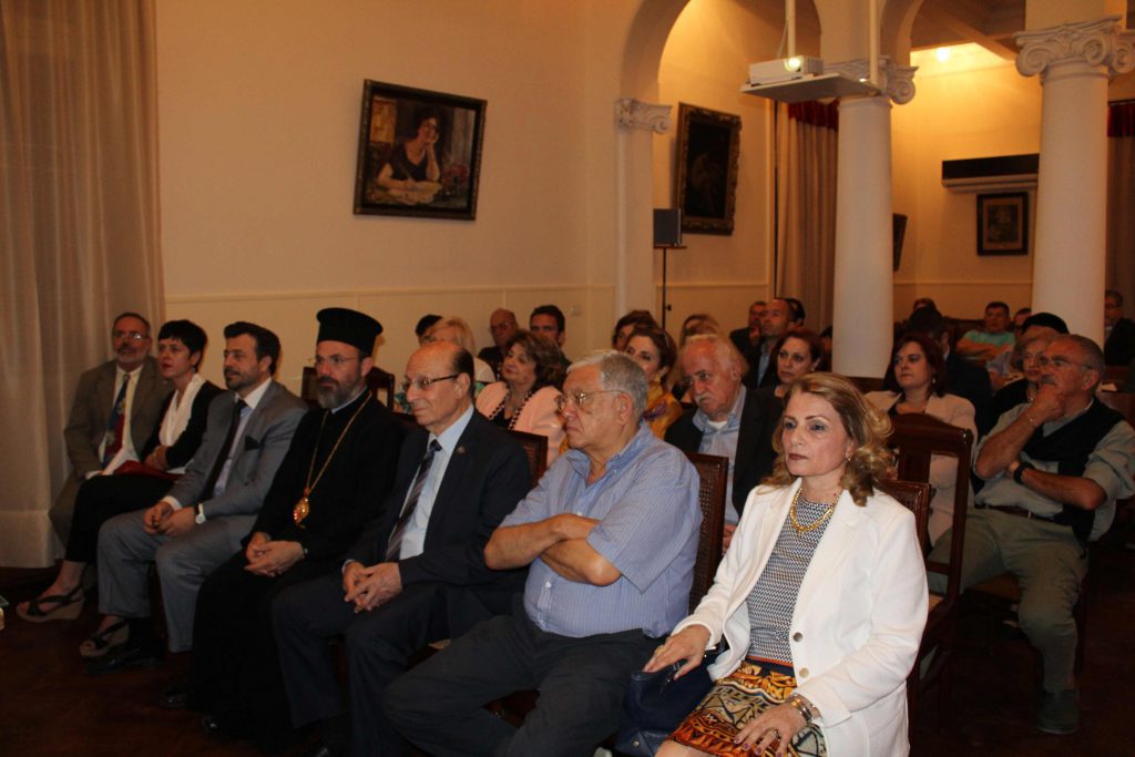 “Την ομιλία της ετίμησαν με την παρουσία τους: ο πατριαρχικὸς επίτροπος Αλεξανδρείας, Σεβασμιώτατος Μητροπολίτης Ἀκκρας κύριος Νάρκισσος, ο Γενικὸς Πρόξενος της Ελλάδος στην Αλεξάνδρεια κύριος Εμμανουὴλ Κακαβελάκης, ο Πρόεδρος της Ελληνικὴς Κοινότητος Αλεξανδρείας κύριος Ενμόνδος Κασιμάτης, ο διαπρεπὴς αρχιτέκτων δόκτωρ Mohamad Awad, καθηγητὴς Πανεπιστημίου, σημαίνον στέλεχος της Βιβλιοθήκης Αλεξανδρείας και του Πατριαρχείου Αλεξανδρείας, η Διευθύντρια του Ιδρύματος Ελληνικού Πολτιτισμού, Παράρτημα Αλεξανδρείας, κυρία Σταυρούλα Σπανούδη, η διακεκριμένη Αρχαιολόγος Καλλιόπη Παπακώστα, η Διδάκτωρ Φιλοσοφίας κυρία Αντωνία Κακαβελάκη, ο αγαπητὸς σε όλους Βασίλης Φιλιππάτος, εκπρόσωποι συλλόγων της πόλεως, όπως επίσης και του διδακτικού προσωπικοὺ των σχολείων της