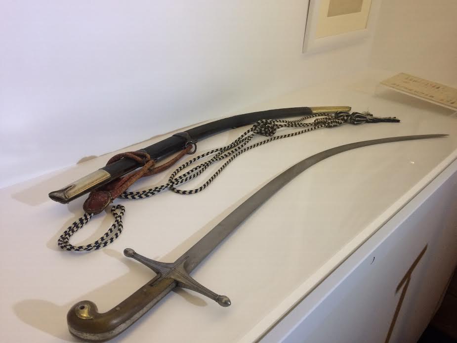 Στις προθήκες και το σπαθί του Θεόδωρου Κολοκοτρώνη, που αγωνίστηκε για την ελευθερία της πατρίδας μας, για να τον κλείσουμε μετά στη φυλακή.