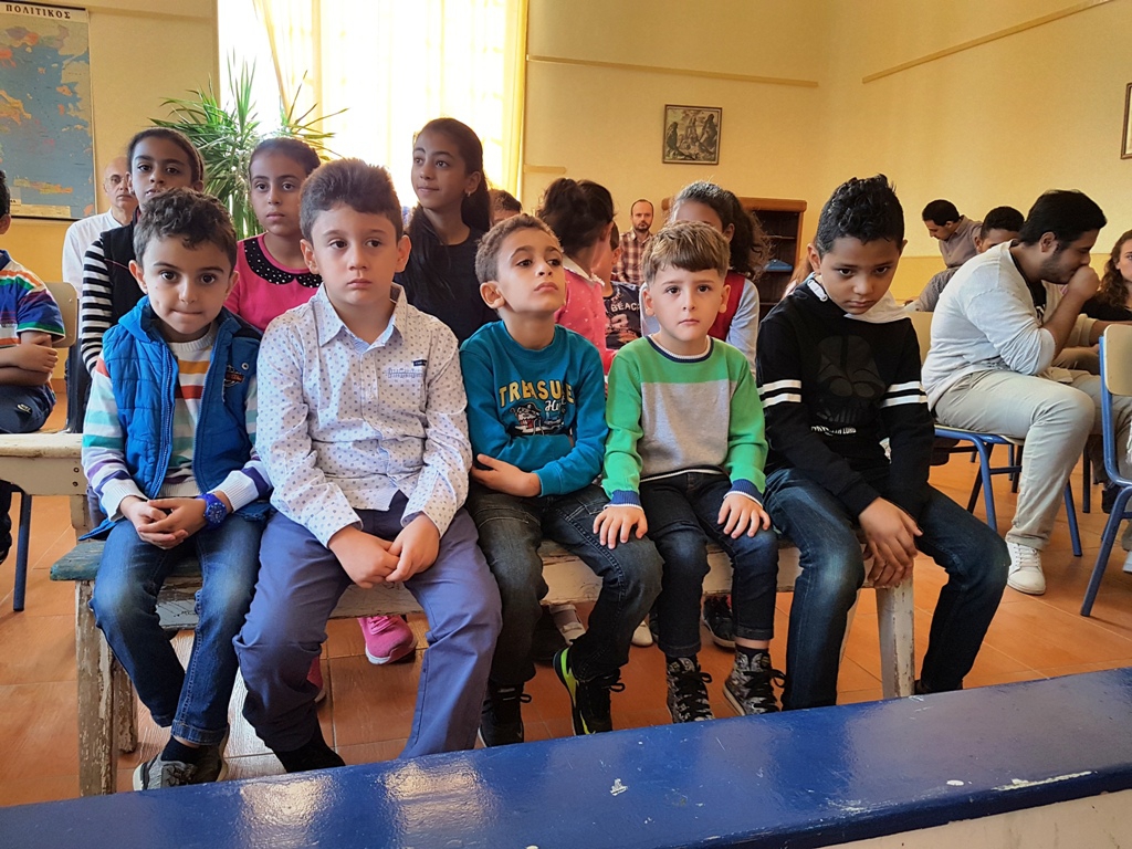 Χαρακτηριστική η παρουσία και των μικρών αιγυπτιωτών μαθητών από το Πρατσίκειο Δημοτικό Σχολείο, που παρακολούθησαν την επετειακή εκδήλωση, μέσα στο ιστορικό Τετράγωνο του Σάτμπι, παρουσία των εκπαιδευτικών και γονέων.