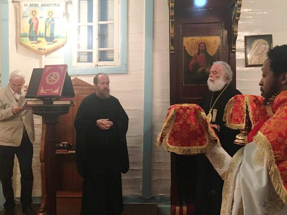 Η Αλεξανδρινή παροικία με τον Μακαριώτατο Ποιμενάρχη της, τον Πατριάρχη Αλεξανδρείας και πάσης Αφρικής κ.κ. Θεόδωρο Β΄, τίμησαν στις 31 Ιανουαρίου δύο πολύ σημαντικές επετείους στην κατανυκτική εκκλησία των Αγίων Αναργύρων στο παραθαλάσσιο Αμπουκίρ: την πανήγυρη των Αγίων Αναργύρων, Κύρου και Ιωάννου, που η μνήμη τους τιμάται στις 31 Ιανουαρίου και το ετήσιο μνημόσυνο του γιατρού Περικλή Τσαπάρη, του αξέχαστου κτήτορα της εκκλησίας, που κάποτε έσφυζε από Έλληνες…