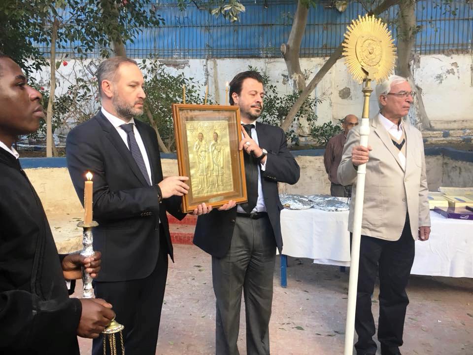 Ανάμεσά τους, και οι εκπρόσωποι των αρχών: ο Γενικός Πρόξενος της Ελλάδας στην Αλεξάνδρεια κ. Εμμανουήλ Κακαβελάκης και ο Α΄ Αντιπρόεδρος της Ελληνικής Κοινότητας Αλεξανδρείας κ. Γιάννης Σιόκας, καθώς και η Πρόεδρος του Συλλόγου Ελλήνων Επιστημόνων Αλεξανδρείας “Πτολεμαίος Α΄” κα Λιλίκα Θλιβίτου, που τίμησαν με την παρουσία τους τη σεμνή θρησκευτική και επετειακή εκδήλωση.