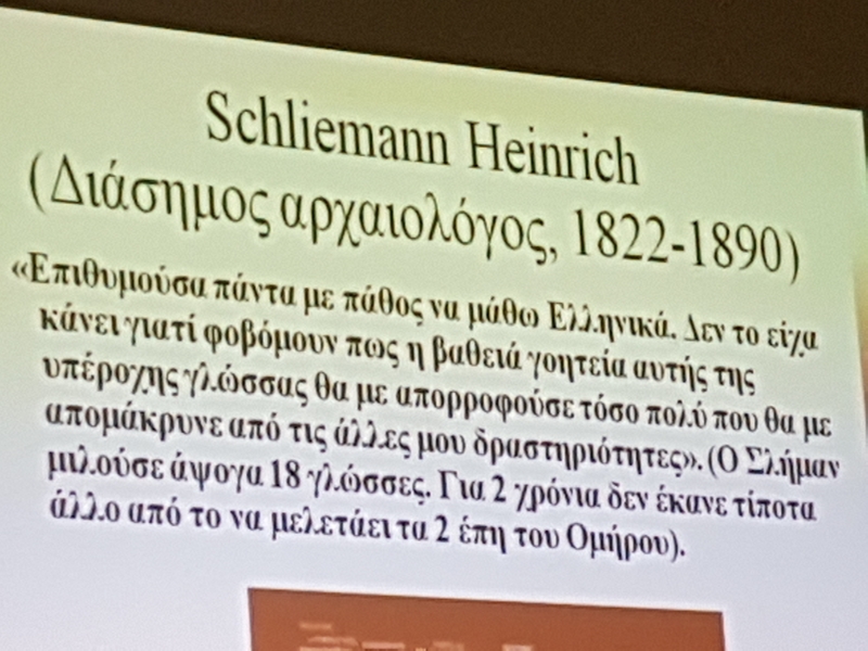 Κατά την εκδήλωση, η Δ/ντρια του Τοσίτσειου κα Αγγελική Τσιαδήμη εξήγησε το πώς ξεκίνησε η ελληνική γλώσσα από τη γραμμική Α΄και Β΄, ενώ τα παιδιά του δημοτικού σχολείου παρουσιάσανε λέξεις που έχουν «δανειστεί» άλλες γλώσσες από την ελληνική.