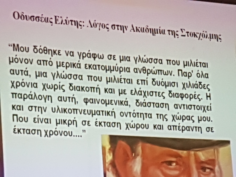«Ας είναι η σημερινή Παγκόσμια Ημέρα της Ελληνικής Γλώσσας, της 9ης Φεβρουαρίου, ένα αγιοκέρι και ένα θυμίαμα στη μνήμη του εθνικού μας ποιητή Διονυσίου Σολωμού, καθώς σαν σήμερα η όμορφη ψυχή του πέταξε στους ουρανούς, έχοντας διδάξει σε όλους τους λαούς να ζούνε ελεύθεροι και να είναι υπερήφανοι όλοι, για τις πατρίδες που τούς χάρισε ο Θεός».