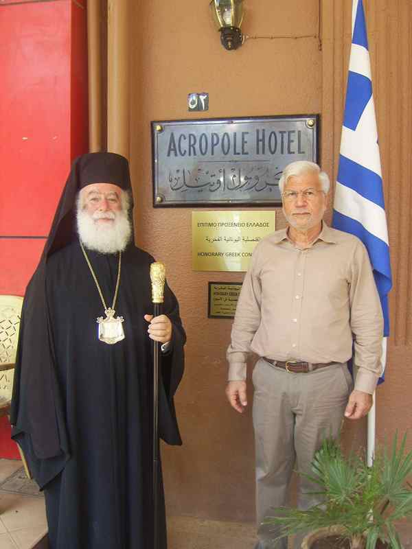 Αμέσως μετά ο Προκαθήμενος του Αλεξανδρινού Θρόνου, μετέβη στο Επίτιμο Ελληνικό Προξενείο το οποίο στεγάζεται στο Ξενοδοχείο “ΑΚΡΟΠΟΛ”, όπου τον υποδέχθηκε ο Επίτιμος Πρόξενος της Ελλάδος στο Σουδάν κ. Γεράσιμος Παγουλάτος, με τον οποίο είχε σύντομη συζήτηση σχετικά με τον Ελληνισμό στο Σουδάν. Ο Μακαριώτατος πρόσφερε στον κ. Παγουλάτο, Τόμο του Αγίου Γεωργίου Καίρου, ως Αναμνηστικό της επισκέψεώς του στο Σουδάν.