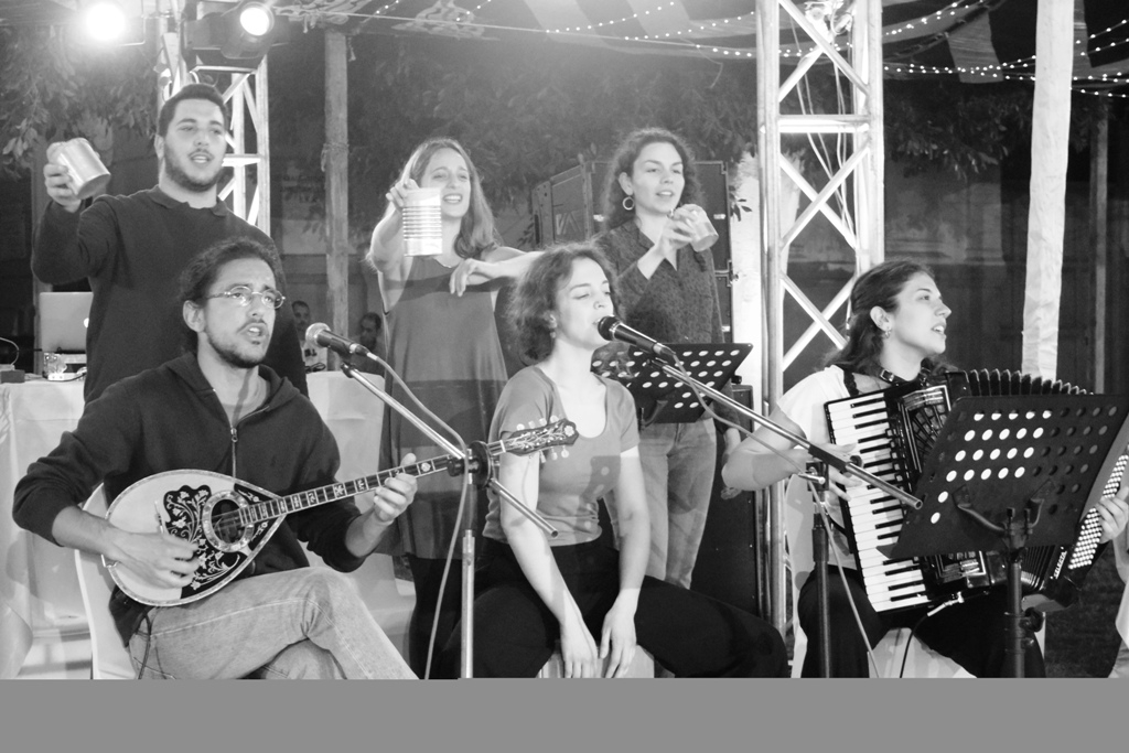Στις ερμηνείες ήταν οι: Κωνσταντίνος Καρανάσιος (μπουζούκι και φωνή), Ελένη Καλογιάννη (φωνή και καχόν), Φαίη Κουφάκη (ακορντεόν), ενώ τους συνόδεψαν με τις αυτοσχέδιες μαράκες τους οι: Άννα Μπίζα, Γιάννης Μπρουκλόγιαννης και Μαρία Μενεγάκη.
