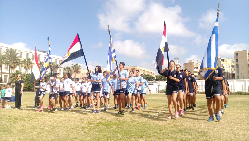 Κάτω από ένα ολόφωτο ουρανό, καθάριο και αλεξανδρινό, όλα άρχισαν με την είσοδο των μαθητών της Πρατσίκειου Δημοτικού Σχολείου και του Αβερωφείου Γυμνασίου Λυκείου, με τις σημαίες, ελληνική και αιγυπτιακή να προπορεύεται και να παρευλάνουν μπρος από τους επισήμους και τον κόσμο, που με συγκίνηση χειροκροτούσε τους νέους αιγυπτιώτες, που ήταν έτοιμοι για το «ευ αγωνίζεσθαι».
