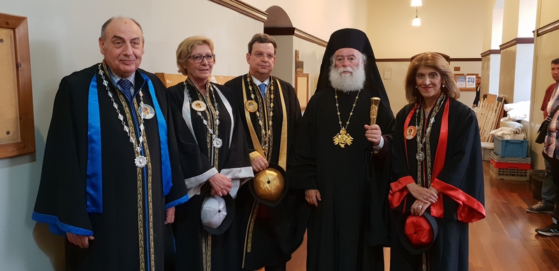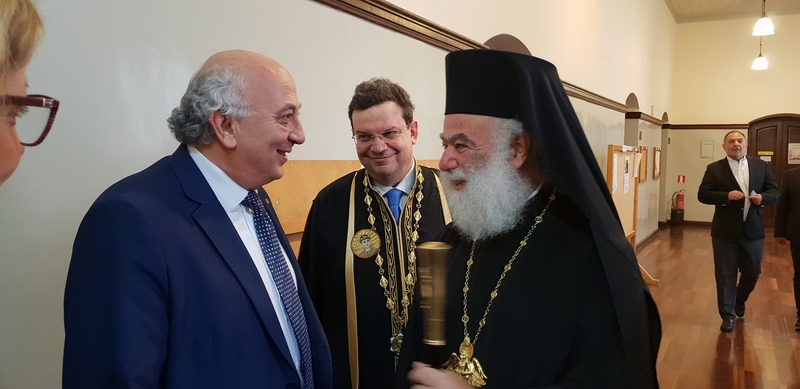 Στον χαιρετισμό του, ο πρύτανης του ΑΠΘ, Περικλής Μήτκας υπογράμμισε ότι με την αναγόρευση του Πατριάρχη σε επίτιμο διδάκτορα, δεν τιμάται μόνο ένα λαμπρό τέκνο των γραμμάτων του Ιδρύματος, αλλά αναδεικνύεται η προσωπικότητα του ιεράρχη και η συνεισφορά του στον ελληνισμό, στη διάδοση του ευαγγελίου της αγάπης και της δικαιοσύνης και πρωτίστως η φροντίδα του για τον συνάνθρωπο της πολύπαθης Αφρικής.