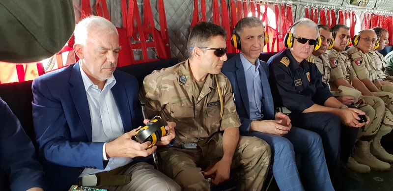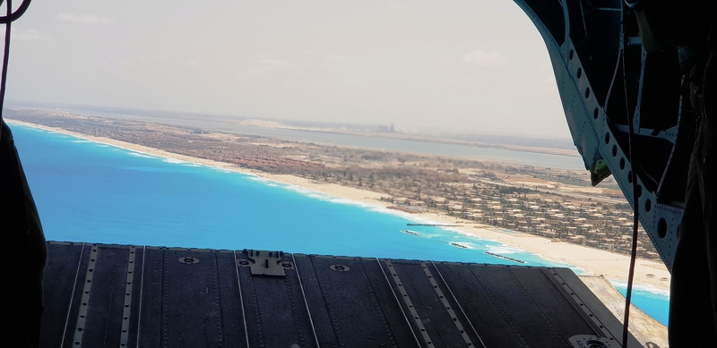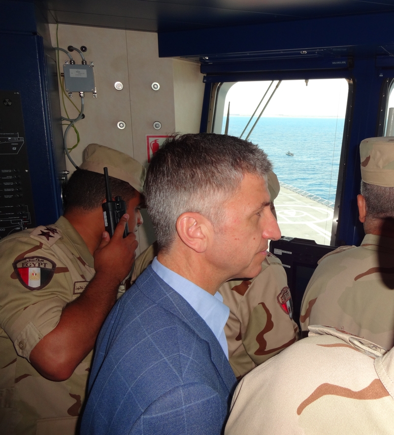 Όλη η αποστολή μεταφέρθηκε με ελικόπτερα τύπου «Σινούκ» στο ελικοπτεροφόρο, ξεκινώντας από το στρατιωτικό αεροδρόμιο του Μποργκ Ελ Άραμπ, για να φτάσουν σε μία από τις ναυαρχίδες του αιγυπτιακού ναυτικού, το Μυστράλ «Γκαμάλ Άμπντελ Νάσερ», από όπου παρακολούθησαν την επίδειξη της άσκησης, και η οποία στηριζόταν στο υποθετικό σενάριο μίας τρομοκρατικής απειλής. Με όλα τα στρατιωτικά μέσα να συμμετάσχουν: πολεμικά αεροπλάνα και σκάφη, φρεγάτες, ελικόπτερα Απάτσι και Σινούκ.