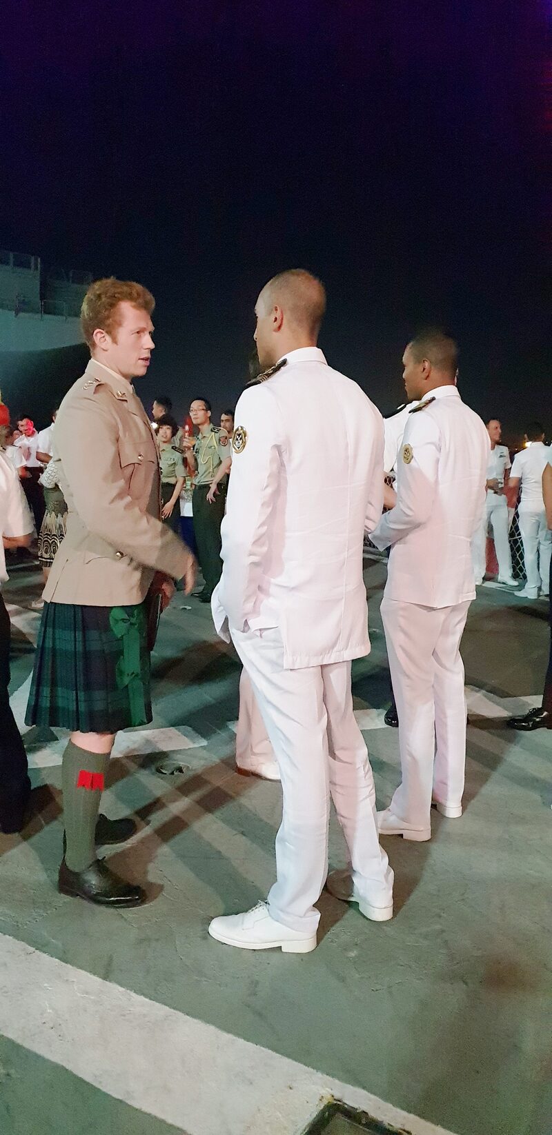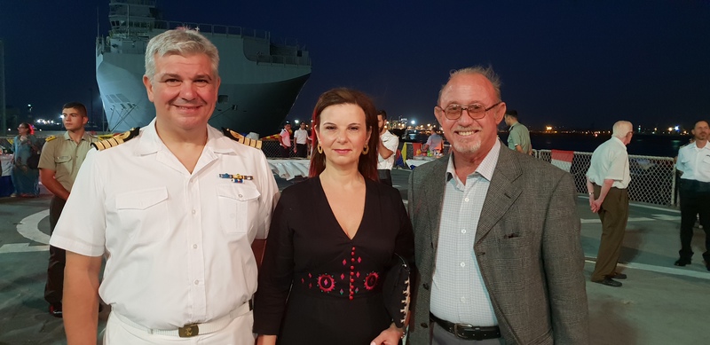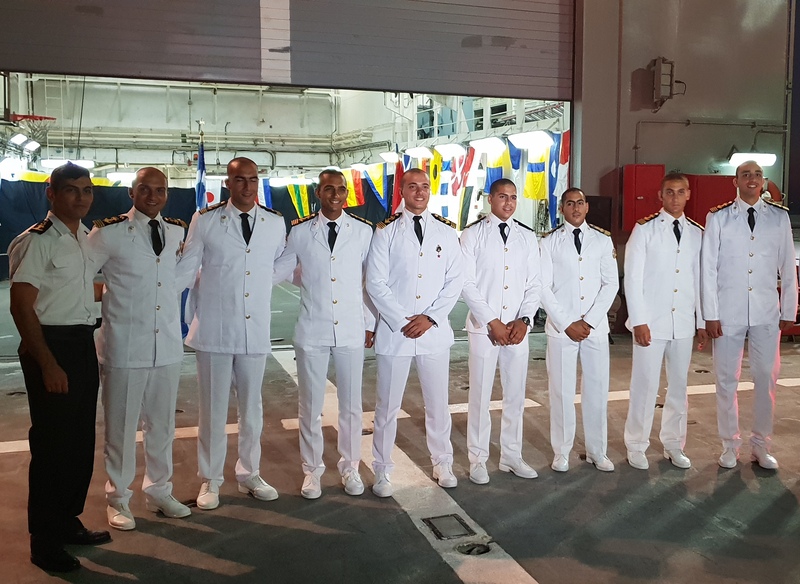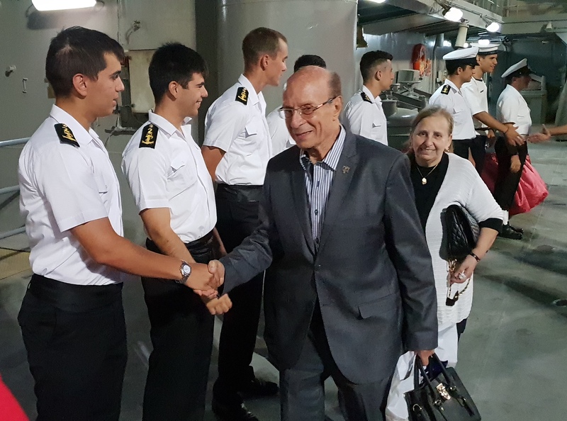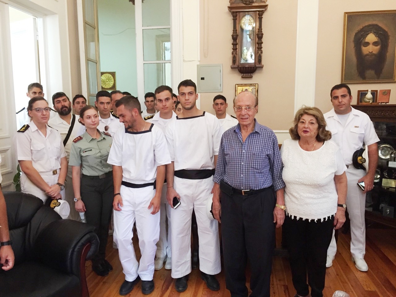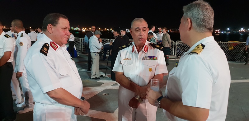 Συγκινητική ήταν και η παρουσία των Ελλήνων παροίκων πάνω στο πλοίο, όπου ο Πλοίαρχος κ. Σπανός υποδέχτηκε με τη σειρά του τον Διοικητή της Ναυτικής Βάσης της Αλεξάνδρειας και τον Διοικητή της Σχολής Ναυτικών Δοκίμων, ευχαριστώντας όλους όσοι παραβρέθηκαν στην δεξίωση που παραχωρήθηκε στο κατάστρωμα του πλοίου, μία δεξίωση που ήταν τιμητική για όλους τους επισκέπτες, χωρίς όμως καμία εκδήλωση χορών ή μουσικής, σεβόμενο το πλήρωμα και οι Ναυτικοί Δόκιμοι τις τραγικές μνήμες από τις πρόσφατες φονικές πυρκαγιές στην Αττική.