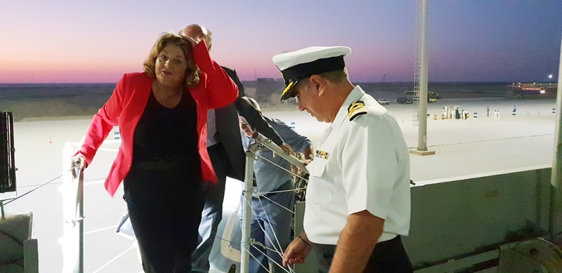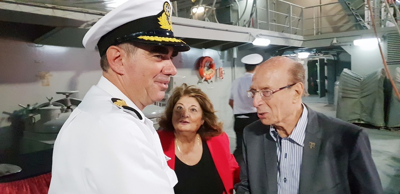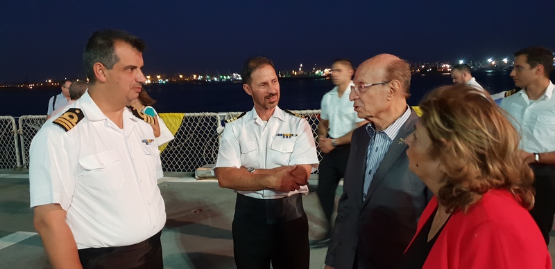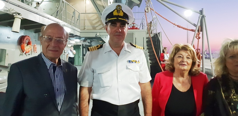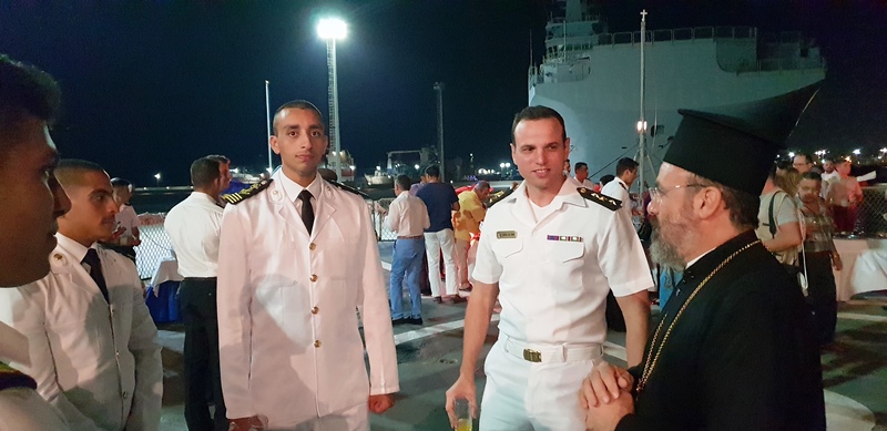 Αργά το βράδυ, μία μεγάλη ομάδα παροίκων, με επικεφαλής τον εκπρόσωπο του Γενικού Προξενείου της Ελλάδας στην Αλεξάνδρεια κ. Τάσο Παπαδόπουλο και τον Πρόεδρο της Κοινότητας κ. Εδμόνδο Κασιμάτη, έγιναν θερμά δεκτοί πάνω στο ελληνικό πολεμικό πλοίο, από τον ίδιο τον Πλοίαρχο κ. Αθανάσιο Σπανό (ΠΝ).