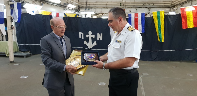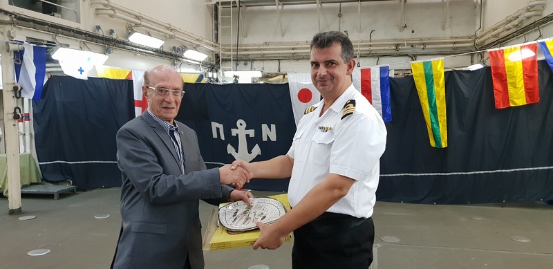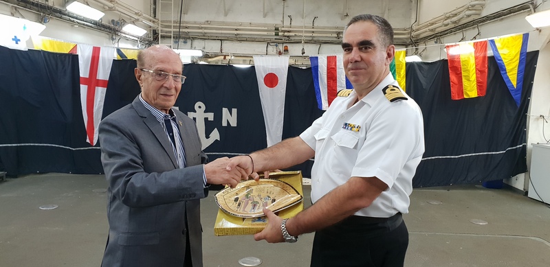 Ο Πλοίαρχος ευχαρίστησε όλους τους παρισταμένους και στο τέλος αντήλλαξε αναμνηστικά δώρα με τον Πρόεδρο της Ελληνικής Κοινότητας κ. Εδμόνδο Κασιμάτη, ευχαριστώντας για την επίσκεψη του ελληνικού πολεμικού πλοίου στο λιμένα της Αλεξάνδρειας αλλά και τη θερμή υποδοχή.