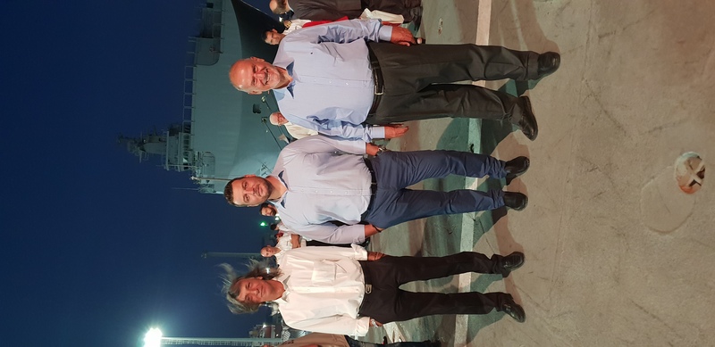 Αργά το βράδυ, μία μεγάλη ομάδα παροίκων, με επικεφαλής τον εκπρόσωπο του Γενικού Προξενείου της Ελλάδας στην Αλεξάνδρεια κ. Τάσο Παπαδόπουλο και τον Πρόεδρο της Κοινότητας κ. Εδμόνδο Κασιμάτη, έγιναν θερμά δεκτοί πάνω στο ελληνικό πολεμικό πλοίο, από τον ίδιο τον Πλοίαρχο κ. Αθανάσιο Σπανό (ΠΝ).