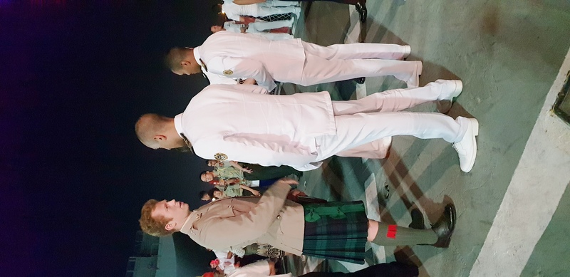 Συγκινητική ήταν και η παρουσία των Ελλήνων παροίκων πάνω στο πλοίο, όπου ο Πλοίαρχος κ. Σπανός υποδέχτηκε με τη σειρά του τον Διοικητή της Ναυτικής Βάσης της Αλεξάνδρειας και τον Διοικητή της Σχολής Ναυτικών Δοκίμων, ευχαριστώντας όλους όσοι παραβρέθηκαν στην δεξίωση που παραχωρήθηκε στο κατάστρωμα του πλοίου, μία δεξίωση που ήταν τιμητική για όλους τους επισκέπτες, χωρίς όμως καμία εκδήλωση χορών ή μουσικής, σεβόμενο το πλήρωμα και οι Ναυτικοί Δόκιμοι τις τραγικές μνήμες από τις πρόσφατες φονικές πυρκαγιές στην Αττική.