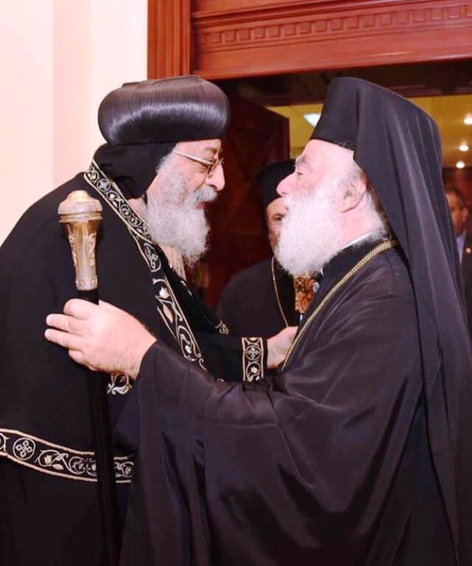 Ο Πατριάρχης Θεόδωρος μίλησε με λόγια αγάπης για τον Κόπτη Πατριάρχη και την Εκκλησία αυτή που μετράει εκατομμύρια πιστούς στη Χώρα του Νείλου, λέγοντάς του χαρακτηριστικά: «Είστε, Μακαριώτατε, ο πιο πονεμένος θρησκευτικός ηγέτης, διότι χάνετε τα παιδιά σας σε καιρό ειρήνης, σε αυτόν τον παράλογο πόλεμο του απεχθούς φανατισμού και της θρησκευτικής μισαλλοδοξίας».