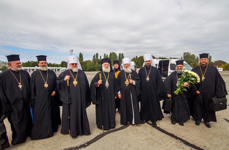 Τον Αλεξανδρινό Προκαθήμενο και τη Συνοδεία του, υποδέχθηκαν στον αερολιμένα της Οδησσού ο οικείος ποιμενάρχης Σεβασμ. κ. Αγαθάγγελος, πλαισιούμενος από τους Σεβασμ. Μητροπολίτες Ντονιέτσκ και Μαριουπόλεως κ. Ιλαρίωνα, Γκόρλοβκας και Σλαβιάνσκ κ. Μητροφάνη, τους Θεοφ. Επισκόπους Ιούζνενσκ κ. Διόδωρο και Αρτσίζ κ. Βίκτωρα.