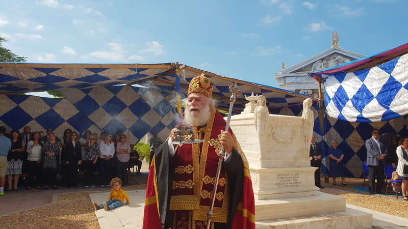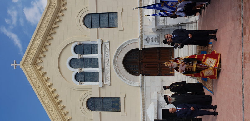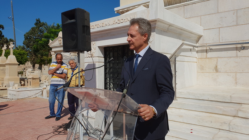 Ευχαριστώ τον Θεό που μέ αξίωσε, ως Πρόεδρο της πρεσβυγενούς Ελληνικής Κοινότητας Αλεξανδρείας, να πρωτοστατήσω στην αναστήλωση και την ανακαίνιση αυτού του ιστορικού ναού, που βρίσκεται δίπλα στα ιστορικά μαυσωλεία του Τοσίτσα, του Αβέρωφ, του Σαλβάγου, του Μπενάκη, του Χωρέμη, του Καζούλη, του Ζερβουδάκη και πολλών άλλων Μεγάλων Ευεργετών του Ελληνικού έθνους, καθώς επίσης και του μεγάλου ποιητή μας Κωνσταντίνου Καβάφη, και στα μνήματα εκατοντάδων προγόνων μας, που κράτησαν την Ορθοδοξία και τον Ελληνισμό, σε αυτή τη μεγαλούπολη της Αλεξάνδρειας, μεταξύ αυτών και των γονέων μου…