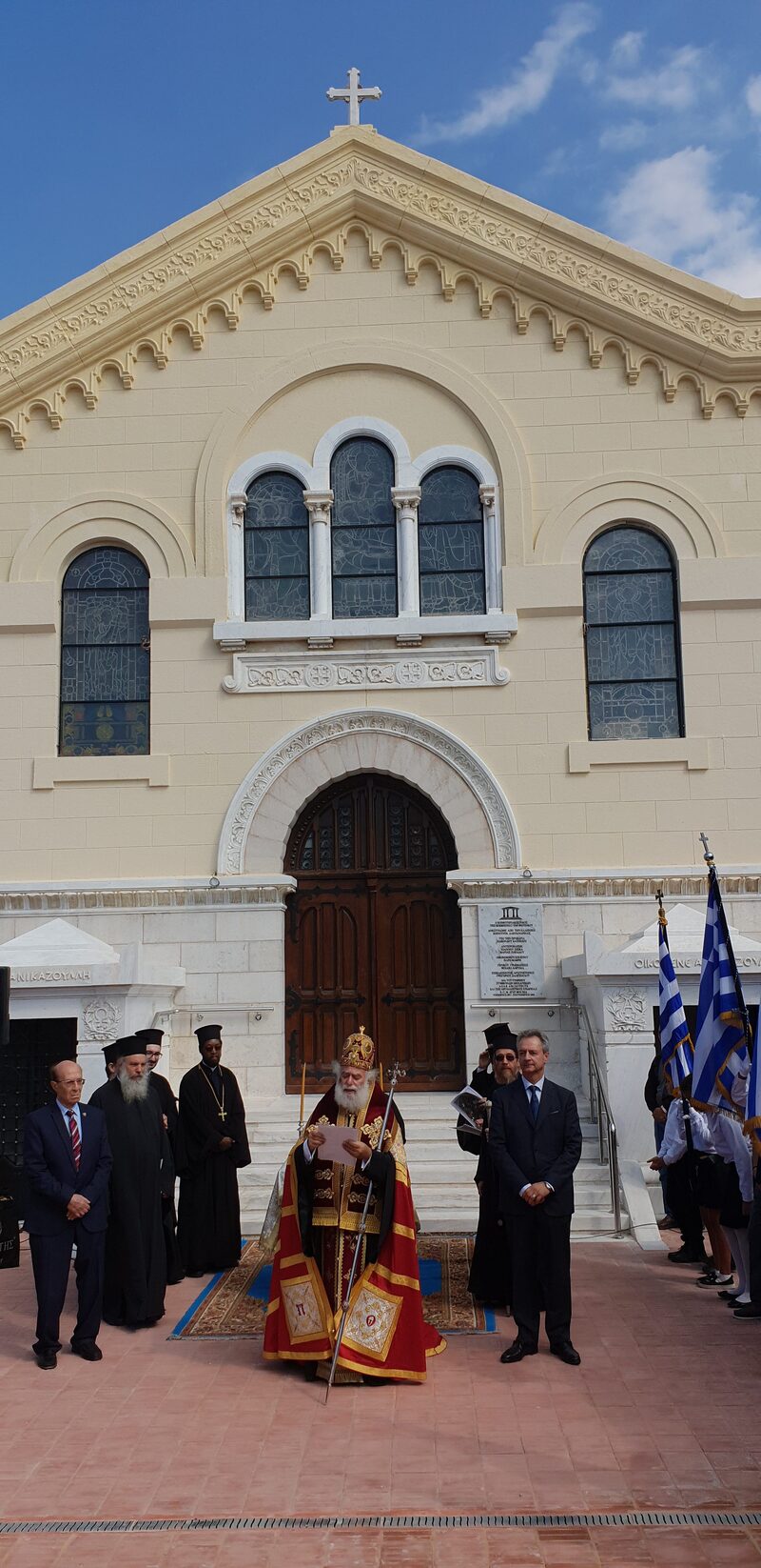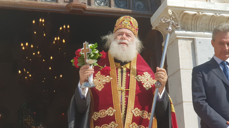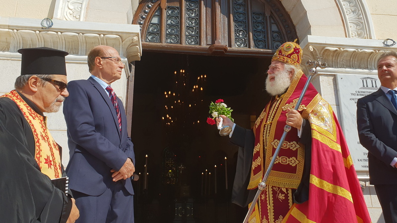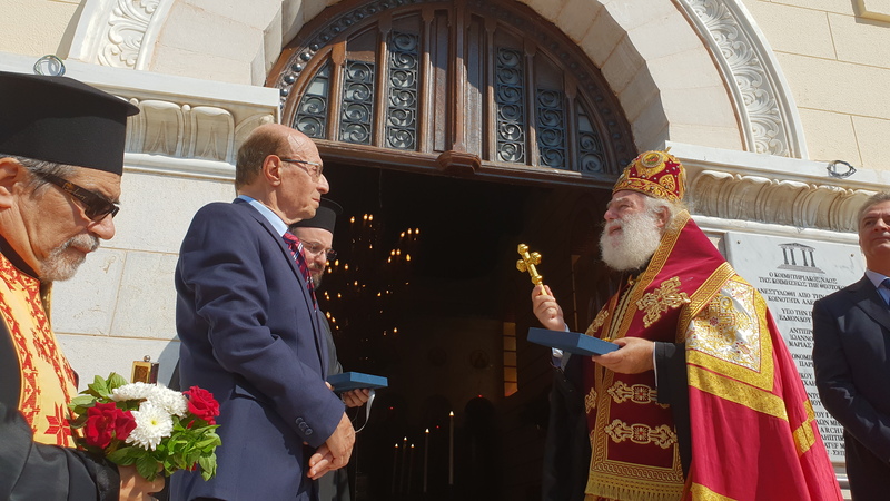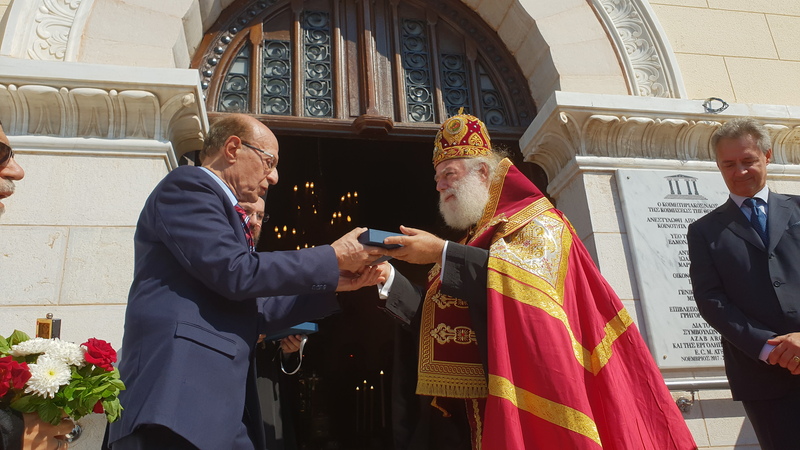 Γνωρίζω πολύ καλά, Μακαριώτατε, την επιθυμία σας να λειτουργήσει ξανά αυτός ο ιερός ναός. Και με το σεβασμό που αρμόζει και την αγάπη μου, στο σεπτό πρόσωπό Σας, παραδίδω αυτό το ναό στην ευλογία Σας…»