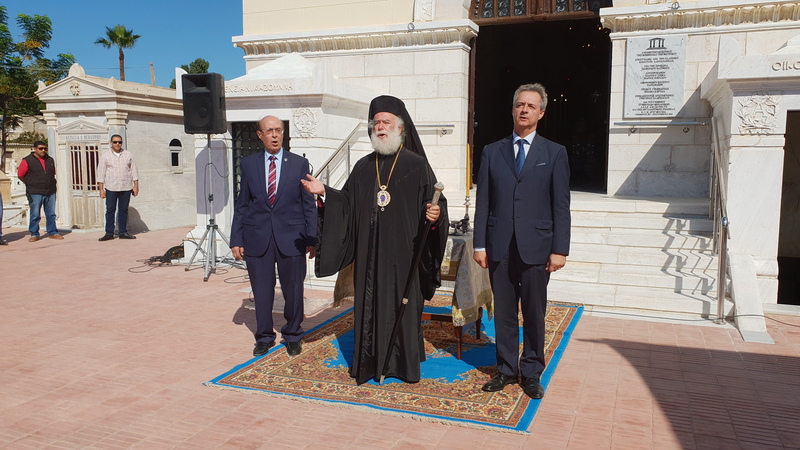 Εκεί, ο Προκαθήμενος της Ορθόδοξης Εκκλησίας της Αφρικής, ψέλνοντας τον Εθνικό μας Ύμνο αλλά και συμβολικά το «Χριστός Ανέστη», βροντοφώναξε ότι «δεν κλείνουμε τις εκκλησίες, αλλά τίς ανοίγουμε… τις ανακαινίζουμε και τίς παραδίδουμε στη δόξα του γένους των Ελλήνων, για τη δόξα της Ορθοδοξίας μας, εδώ στη θεοβάδιστη Χώρα της Αιγύπτου, με τις καμπάνες να κτυπάνε παντού και να διαλαλούν τη φιλία των μεγάλων χωρών της Ελλάδας, της Αιγύπτου και της Κύπρου», τόνισε, δεχόμενος τα πολλά χειροκροτήματα της παροικίας αλλά και τα θερμά συγχαρητήρια των παρεβρισκομένων, με πρώτο τον Γενικό Πρόξενο της Ελλάδας στην Αλεξάνδρεια κ. Αθανάσιο Κοτσιώνη, που παίρνοντας αφορμή από το μεγάλο αυτό έργο, επεσήμανε ότι με τον ίδιο τρόπο, με την ίδια επιμονή και υπομονή, και με τις ευλογίες του Πατριάρχου Θεοδώρου, αλλά και τη στήριξη της Ελληνικής Κοινότητας, θα μπορέσουμε όλοι να σταθούμε στο ύψος των περιστάσεων. Και ότι ο Αιγυπτιώτης Ελληνισμός μπορεί με τον καλύτερο δυνατό τρόπο να αντιμετωπίσει τις κρίσιμες στιγμές που διέρχεται η χώρα, και τους δύσκολους αυτούς καιρούς», εκφράζοντας τη βεβαιότητα ότι «όλοι μαζί θα τα καταφέρουμε».