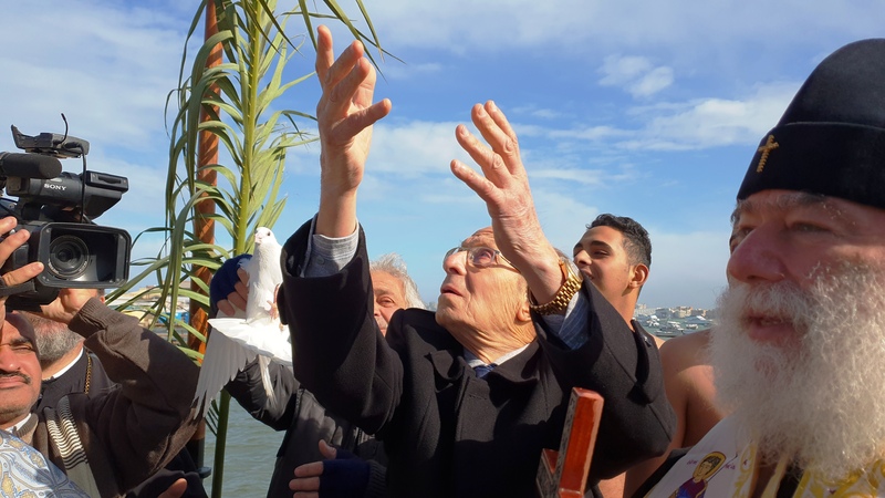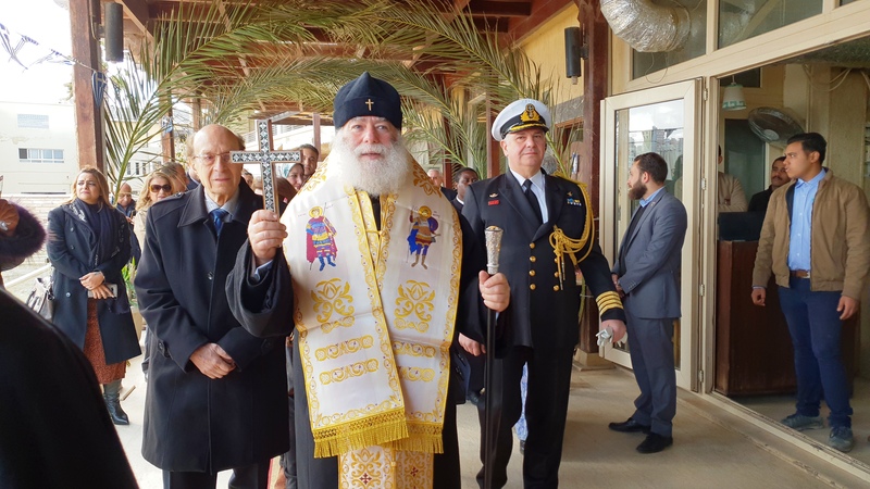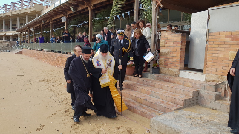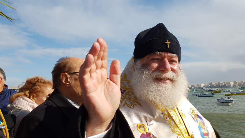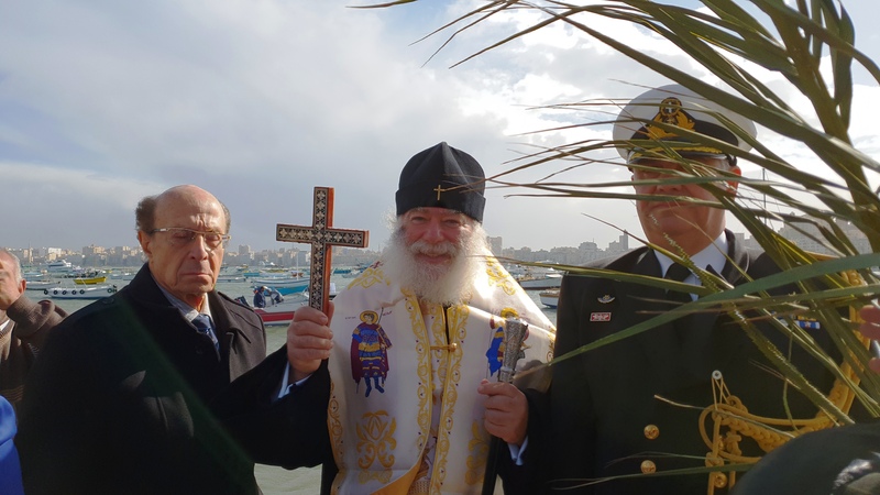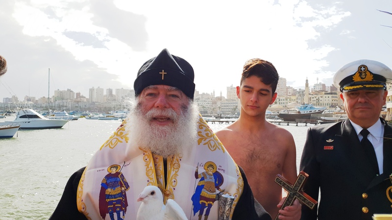 Την ευχή αυτή έδωσε ο Αλεξανδρινός Προκαθήμενος, αρχίζοντας να ψέλνει στον Ελληνικό Ναυτικό Όμιλο Αλεξανδρείας το «Εν Ιορδάνη, βαπτοζομένου Σου, Κύριε…», με τα παιδιά της παροικίας να τολμούν και να ρίχνονται μέσα στα εξαιρετικά παγωμένα φέτος νερά της θάλασσας, και να του φέρνουν τον Τίμιο Σταυρό, κάτω από τα χειροκροτήματα όλης της παροικίας, με επικεφαλής τον Πρόεδρο της Ελληνικής Κοινότητας Αλεξανδρείας και του Ναυτικού Ομίλου κ. Εδμόνδο Κασιμάτη και με τον Ακόλουθο Άμυνας της Ελληνικής Πρεσβείας Πλοίαρχο ΠΝ Παρίση Κανούτο να εκπροσωπεί τις διπλωματικές αρχές.