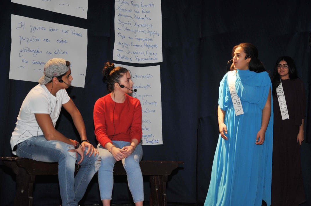 Ακολούθησε μελοποιημένη ποίηση, ανάγνωση κειμένων σε διάφορες γλώσσες, ένα πολύ επίκαιρο και κατά πολλά ενδιαφέρον θεατρικό δρώμενο από τους μαθητές της Α΄ Λυκείου του Αβερωφείου Σχολείου, τραγούδι και κείμενα σε μια υπέροχη απόδοση από τους μαθητές του Τοσίτσαιου Πρατσίκειου Δημοτικού Σχολείου, ενώ την παράσταση έκλεψε το Λύκειο των Ελληνίδων που καταχειροκροτήθηκε όταν οι μαθητές χόρεψαν με παραδοσιακές φορεσιές τον Ικαριώτικο.