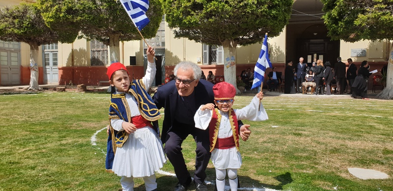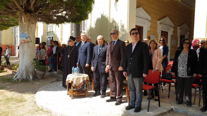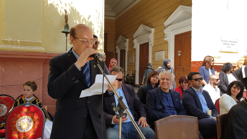 Ο Πρόεδρος της Ελληνικής Κοινότητας Αλεξανδρείας κ. Εδμόνδος Κασιμάτης τόνισε το πόσο σημαντικό είναι φέτος να συνεορτάζουν τα σχολεία των δύο πόλεων από κοινού με την ελληνική παροικία, την επέτειο της Εθνικής Παλιγγενεσίας.