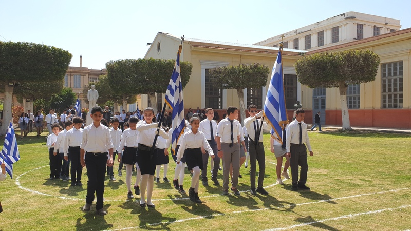 Και τα δύο σχολεία, τόσο η 37μελής ομάδα που ταξίδεψε από την Αθήνα από το δυναμικότητας 200 μαθητών Μαράσλειο, και τα παιδιά των αλεξανδρινών σχολείων, με τα 70 περίπου Αιγυπτιωτόπουλα, χόρεψαν, τραγούδησαν, και – το πιο σημαντικό – συμμετείχαν στην ίδια κοινή μαθητική παρέλαση, σηκώνοντας από κοινού την ελληνική σημαία με την αιγυπτιακή, καταχειροκροτούμενοι από τον Ελληνισμό της Αλεξάνδρειας, που ήρθε να τους θαυμάσει.