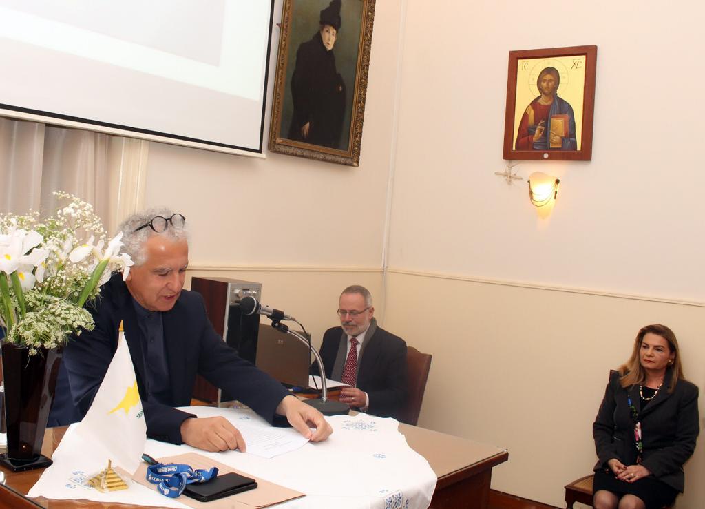 Κατά την πέμπτη αυτή για τη φετινή περίοδο εκδήλωση του «Πτολεμαίου» που τελούσε σε συνεργασία με την «Ελληνικὴ Αδελφότητα των εν Αιγύπτω Κυπρίων», στην Αλεξάνδρεια, τους προσκεκλημένους καλωσόρισε η Πρόεδρος του Συλλόγου κα Λιλίκα Θλιβίτου: τον Πατριαρχικὸ Επίτροπο Αλεξανδρείας, Σεβ. Μητροπολίτη Άκκρας κ. Νάρκισσο, εκπρόσωπο του Μακαριωτάτου Πάπα και Πατριάρχη Αλεξανδρείας και πάσης Αφρικής κ.κ. Θεοδώρου Β΄, τους πανοσ. Ιερείς Αθηναγόρα και Ισαάκ, τον Πρόεδρο της πρεσβυγενούς Ελληνικής Κοινότητας Αλεξανδρείας κ. Εδμόνδο Κασιμάτη, την Προεδρεύουσα της Ελληνικής Αδελφότητας των εν Αιγύπτω Κυπρίων στην Αλεξάνδρεια κα Μάρω Φορμόζη, την Πρόεδρο του Συνδέσμου Ελλήνων Εκπαιδευτικών κα Γεωργία Μαστουρίδου, την Διευθύντρια του Αβερωφείου Λυκείου της Ελληνικής Κοινότητας Αλεξανδρείας κα Δήμητρα Παπανώτα, τον Κοινοτικό Επίτροπο και Περιφερειακό Έφορο Προσκόπων κ. Δημήτρη Κάβουρα, τον Κοινοτικό Επίτροπο κ. Αντρέα Βαφειάδη, την Αρχαιολόγο Δρ. Καλλιόπη Παπακώστα, τον Δρ. Μίμη Σοφοκλέους, Επιστημονικό Διευθυντή του Παττίχειου Δημοτικού Μουσείου, Ιστορικού Αρχείου και Κέντρου Μελετών Λεμεσού και άλλους επισήμους.