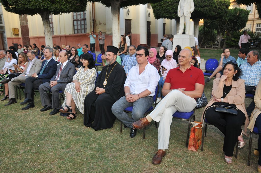 Παρόντες ήταν ο Πατριαρχικός Επίτροπος Αλεξανδρείας Σεβ. Μητροπολίτης Άκκρας κ. Νάρκισσος, ο Γενικός Πρόξενος της Ελλάδας στην Αλεξάνδρεια κ. Αθανάσιος Κοτσιώνης, ο Πρόεδρος της Ελληνικής Κοινότητας Αλεξανδρείας και του ΕΝΟΑ κ. Εδμόνδος Κασιμάτης, ο Α΄ Αντιπρόεδρος της ΕΚΑ κ. Ιωάννης Σιόκας, ο Γενικός Γραμματέας της ΕΚΑ κ. Μιχάλης Καρυδιάς και ο Οικονομικός Επόπτης της ΕΚΑ κ. Πάρης Πεφάνης Μακρής, και οι δύο τελευταίοι Έφοροι των σχολείων, οι οποίοι απεκόμισαν τα συγχαρητήρια των παρεβρισκομένων για το έργο που επιτέλεσαν καθ’ όλη τη σχολική χρονιά. Επίσης, παρόντες ήταν ο π. Σπυρίδωνας Κλαδάκης, η Πρόεδρος του Συλλόγου Ελλήνων Επιστημόνων Αλεξανδρείας “Πτολεμαίος Α΄” Δρ Λιλίκα Θλιβίτου, η Πρόεδρος του Συλλόγου Εκπαιδευτικών Αλεξανδρείας κα Γεωργία Μαστουρίδου και πολύς κόσμος.