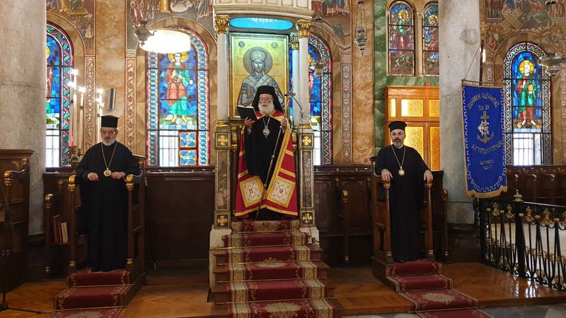 «Προχωράμε και περιμένουμε τη λαμπερή και όμορφη εκείνη ημέρα, που θα αποτελέσει την ημέρα της δικαιοσύνης της ευλογημένης Κύπρου», τόνισε σε κλίμα συγκίνησης ο Αλεξανδρινός Προκαθήμενος, στον περικαλλή κοινοτικό ναό του Ευαγγελισμού της Θεοτόκου Αλεξανδρείας, εκεί όπου ανυψώνεται μόνιμα το λάβαρο της Κυπριακής Αδελφότητας φιλοτεχνημένο στα ελληνικά χρώματα του λευκού και του γαλάζιου.