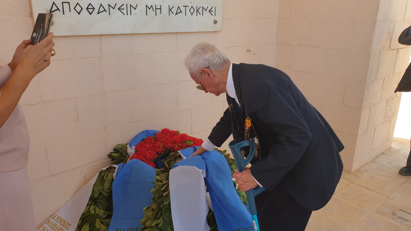 Να σημειωθεί ότι και φέτος όπως και κάθε χρόνο, την τελετή μνήμης διοργάνωσε από κοινού ο Ακόλουθος Άμυνας της Ελληνικής Πρεσβείας στο Κάιρο Πλοίαρχος ΠΝ Παρίσης Κανούτος και η  Διεύθυνση Εφέδρων Πολεμιστών, Αγωνιστών, Θυμάτων και Αναπήρων (ΔΕΠΑΘΑ) της οποίας ο Δ/ντής, Συνταγματάρχης Απόστολος Δεληγιάννης, τόνισε στο λόγο του ότι όλοι σήμερα ήρθαμε στη «σεμνή αυτή τελετή στο φιλόξενο χώρο της Αιγύπτου, για να αποτίσουμε τον οφειλόμενο φόρο τιμής σε αυτούς που θυσίασαν τη ζωή τους αλλά και στους επιζώντες μαχητές που είναι σήμερα μαζί μας. Στους ήρωες μαχητές που έπεσαν υπερασπιζόμενοι τα υπέρτατα και πανανθρώπινα ιδανικά της φυλής μας που είναι η ελευθερία, η δημοκρατία, η ειρήνη, η ανθρώπινη αξιοπρέπεια».