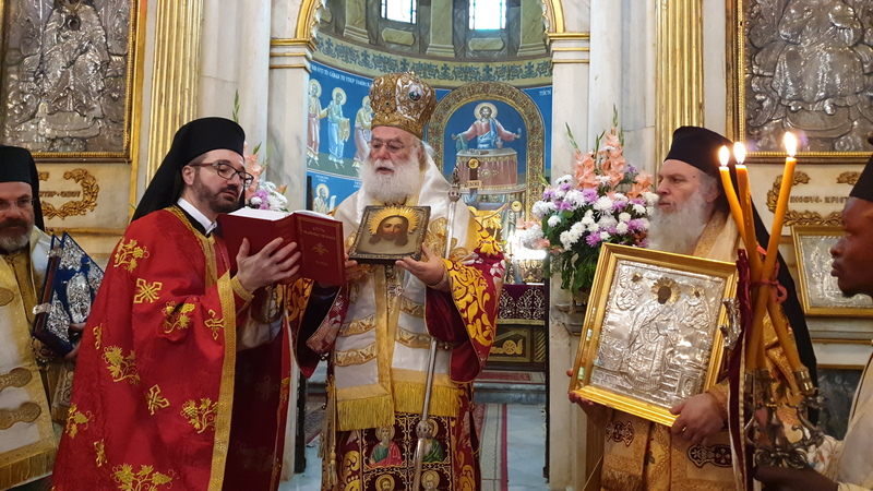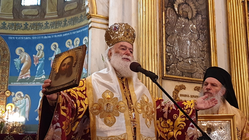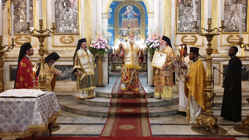 Μιλώντας από τον Κοινοτικό ιερό ναό του Ευαγγελισμού της Θεοτόκου Αλεξανδρείας, και παρουσία του Γενικού Προξένου της Ελλάδας στην Αλεξάνδρεια κ. Αθανάσιου Κοτσιώνη, του Προέδρου της πρεσβυγενούς Ελληνικής Κοινότητας κ. Εδμόνδου Κασιμάτη και πολλών εκπροσώπων σωματείων και παροίκων, ο Αλεξανδρινός Προκαθήμενος κάλεσε όλους τους παρεβρισκομένους, αμέσως μετά την τελετή αναστήλωσης των ιερών εικόνων, να ταξιδέψουν νοερά από την Μεσόγειο Θάλασσα και την Αίγυπτο, προς την Βασιλεύουσα των πόλεων, την Κωνσταντινούπολη, όπως είπε χαρακτηριστικά.