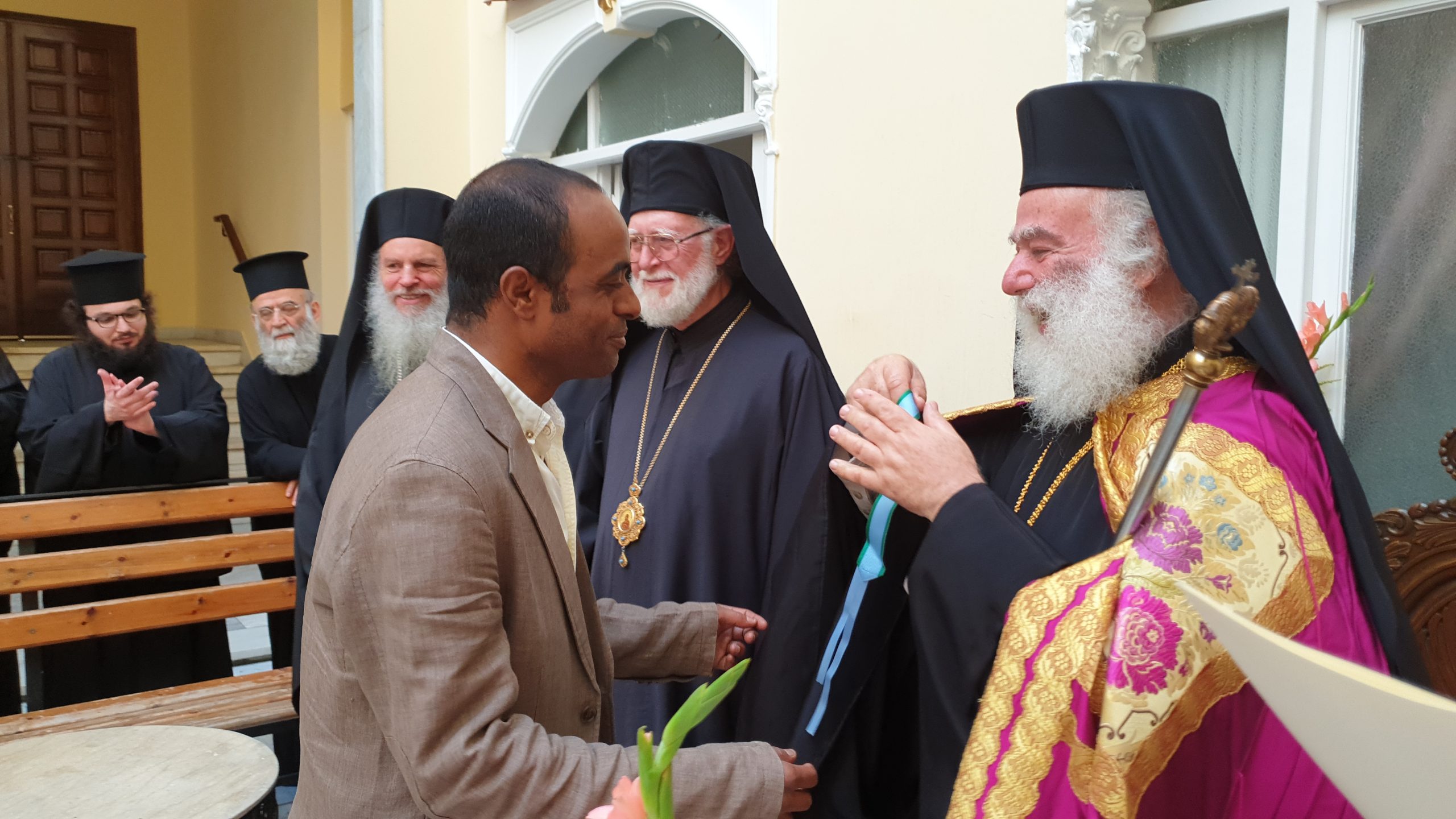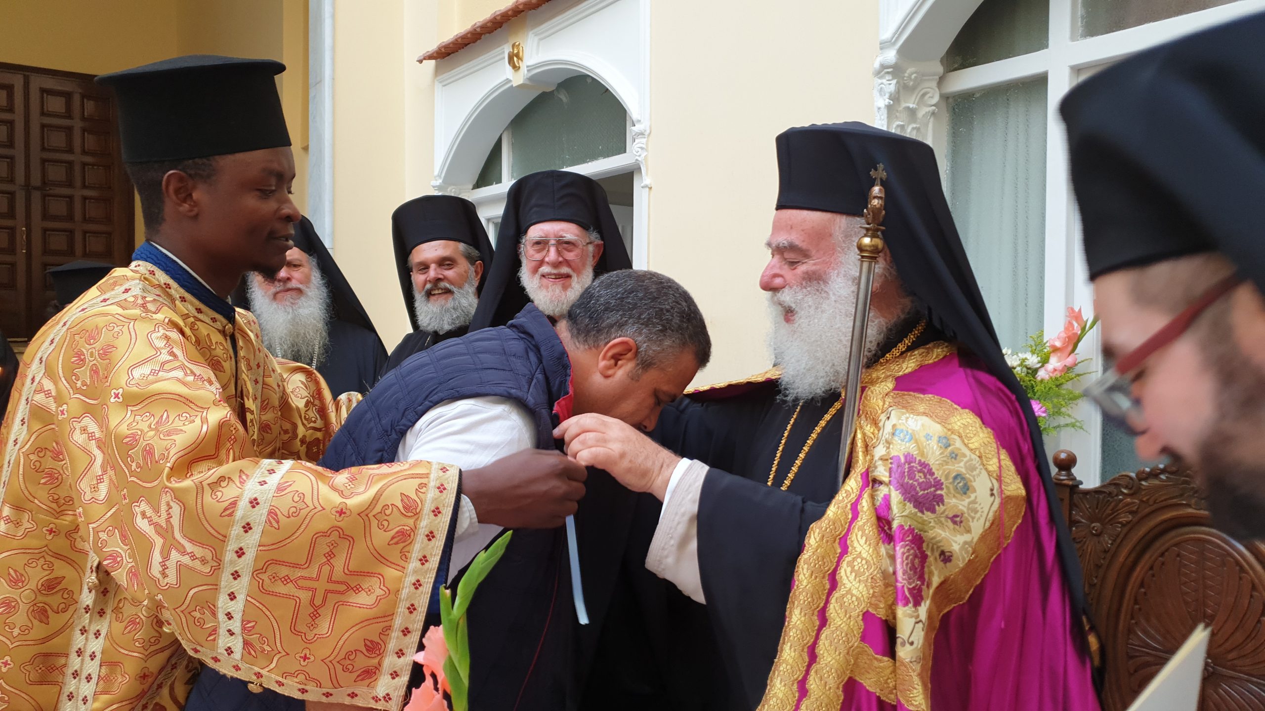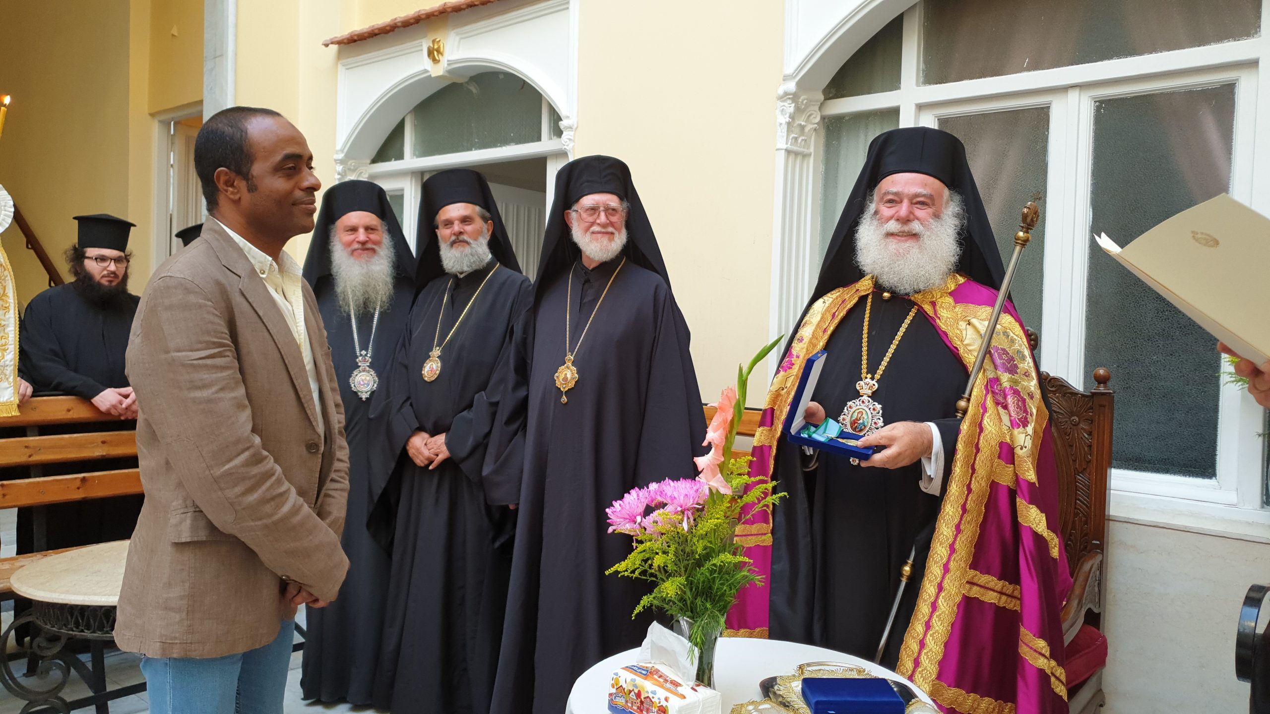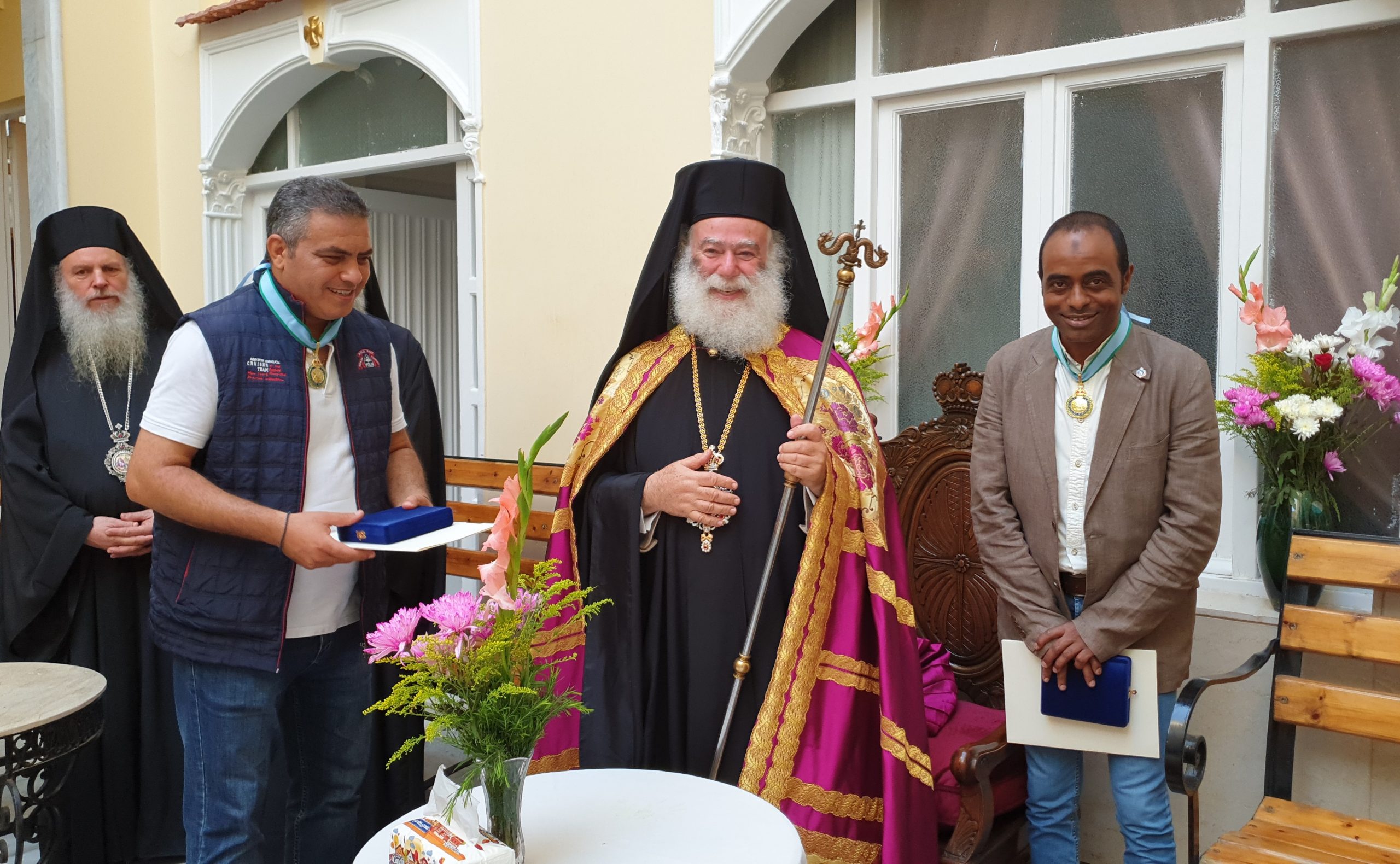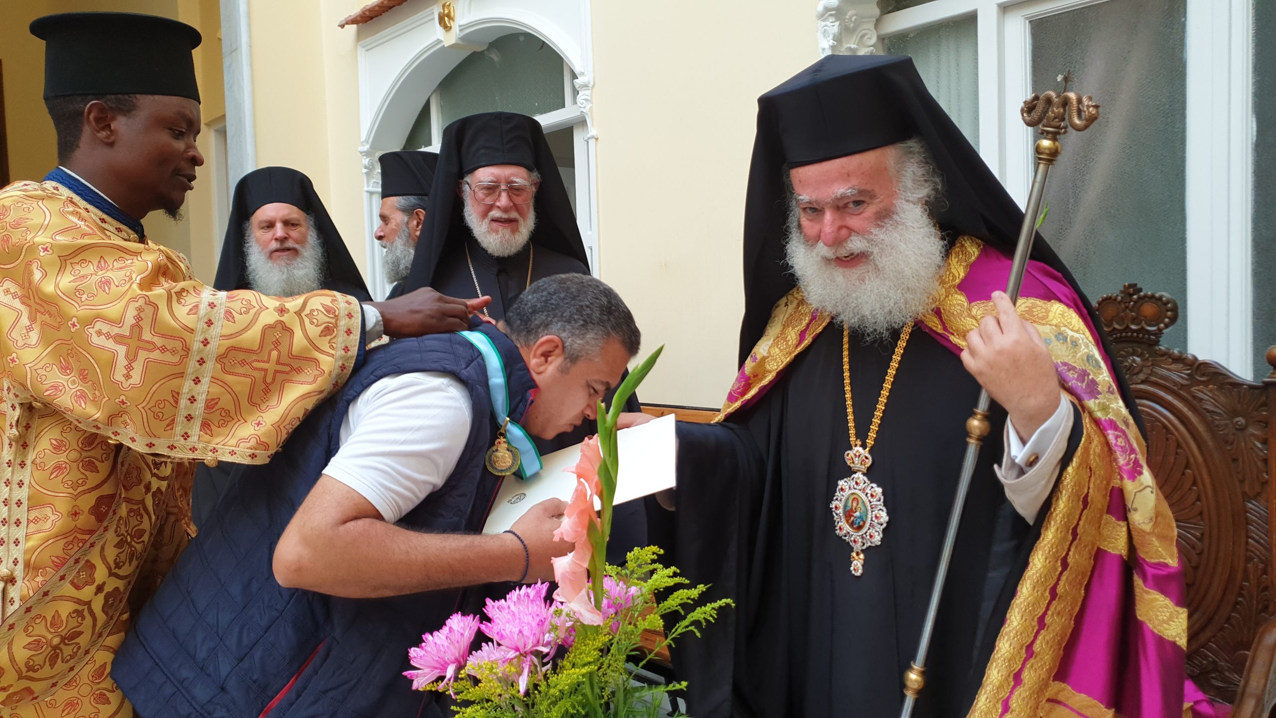 Η τιμητική τους διάκριση μάλιστα απονεμήθηκε από τον ίδιο τον Πατριάρχη Αλεξανδρείας κ.κ. Θεόδωρο, την παραμονή μάλιστα της ημέρας που εκείνος εόρταζε τα τριάντα χρόνια του ως Επίσκοπος, στον Άγιο Σάββα τον Ηγιασμένο Αλεξανδρείας, παρουσία του Πατριαρχικού Επιτρόπου Αλεξανδρείας Μητροπολίτου Ναυκράτιδος κ. Νάρκισσου, του Πατριαρχικού Επιτρόπου Καΐρου Μητροπολίτου Μέμφιδος κ. Νικοδήμου, του Πατριαρχικού Επιτρόπου για τους Αραβοφώνους Μητροπολίτου Ερμουπόλεως κ. Νικολάου, του Μητροπολίτου Πηλουσίου κ. Νήφωνα και του Επισκόπου Ταμιάθεως καθώς και του ιερού κλήρου.