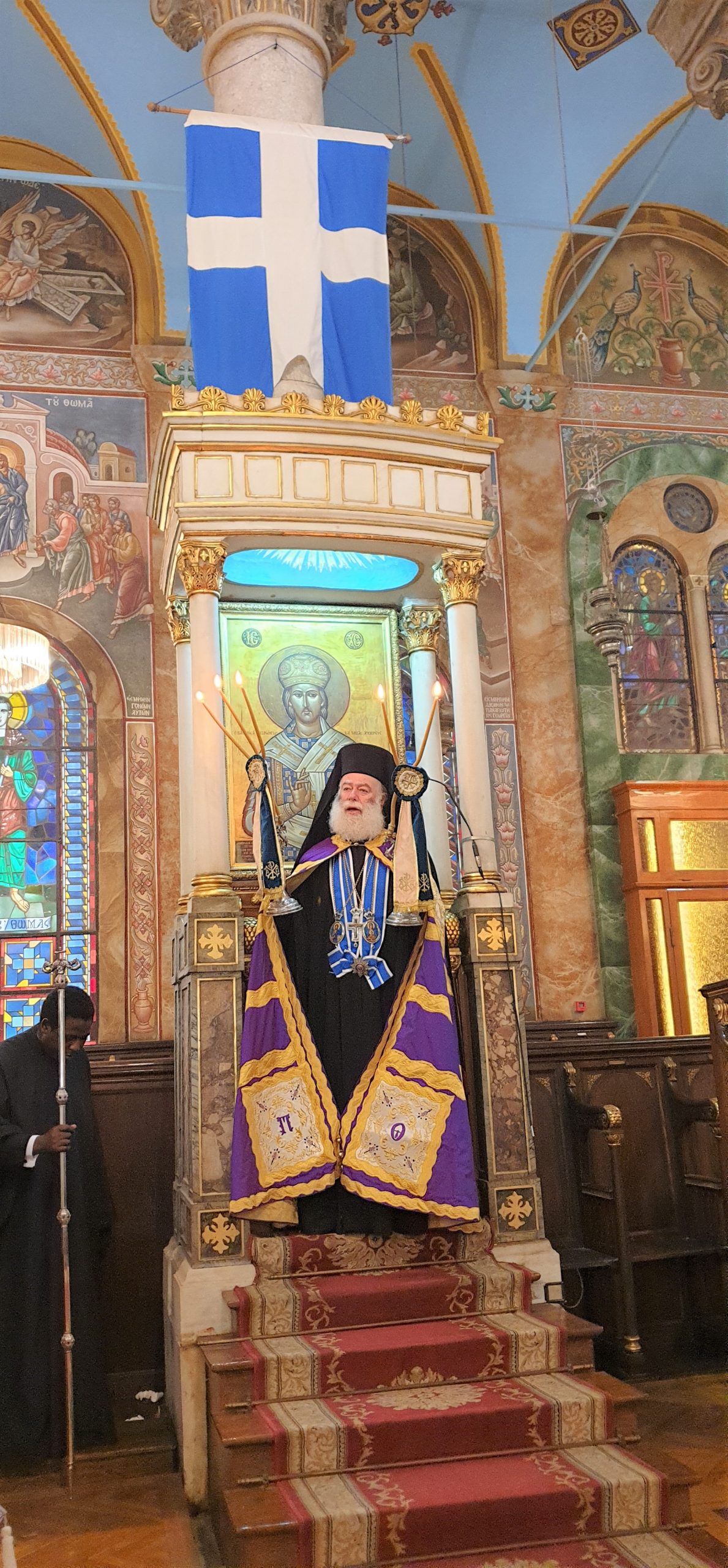 Απευθυνόμενος στους αλεξανδρινούς νέους, μαθητές και προσκόπους, που σήκωναν την ελληνική σημαία, επεσήμανε ο Πατριάρχης Αλεξανδρείας ότι «όσο βλέπουμε τα σύμβολα της πατρίδας μας να υποκλίνονται στην Υπερμάχο των στρατηγών, τότε, όχι, δεν φοβόμεθα! Όποιος εχθρός κι αν κυκλώσει την πατρίδα μας, όποιος εχθρός κι αν πολεμήσει εναντίον μας, είμαστε γένος ευλογημένο».
