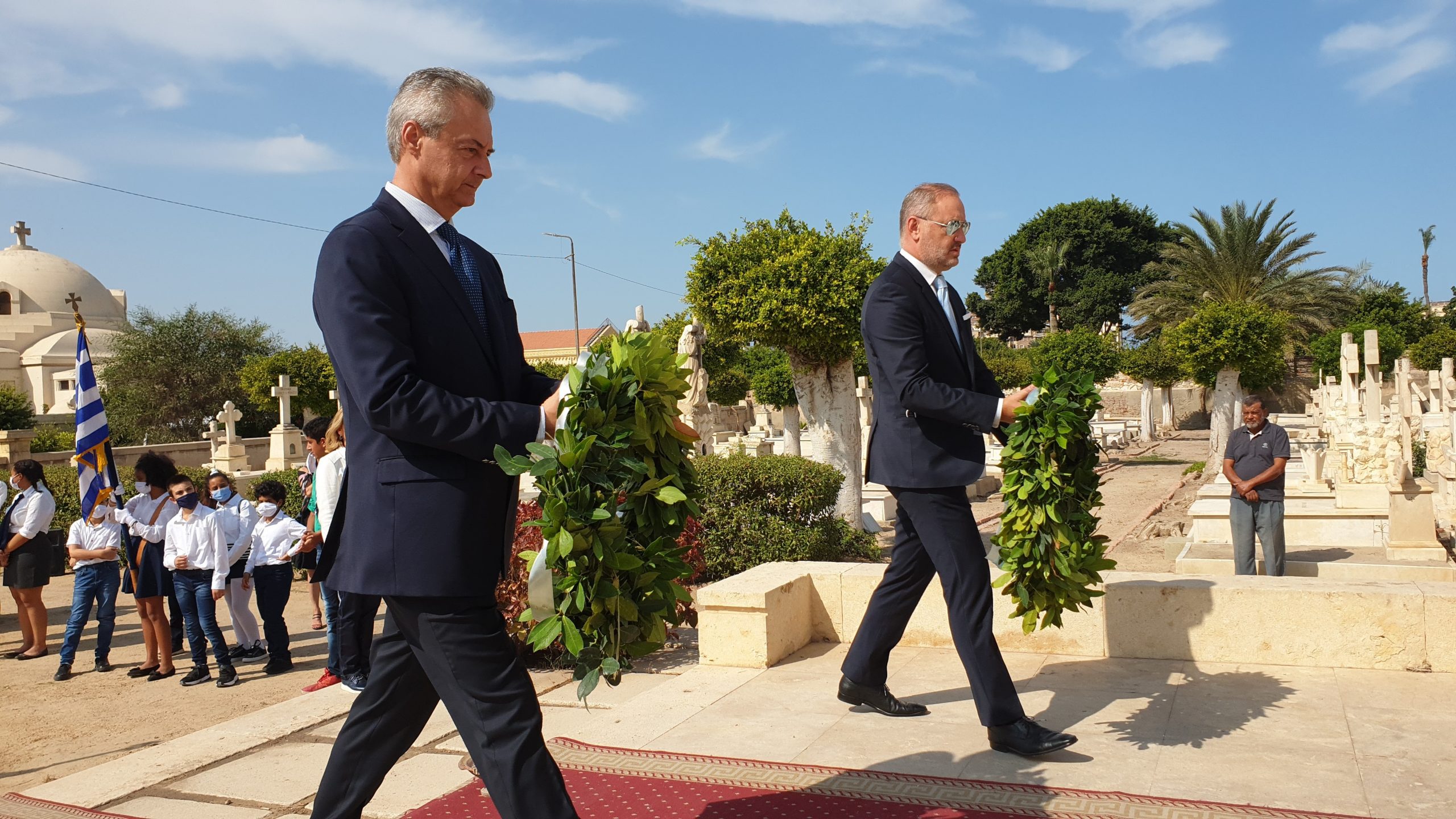 Σε κλίμα συγκίνησης που δε μπόρεσαν να κρύψουν ούτε τα αυστηρά μέτρα για τον κορονοϊό, εόρτασε η ελληνική παροικία στην Αίγυπτο, την Εθνική επέτειο του «ΟΧΙ».