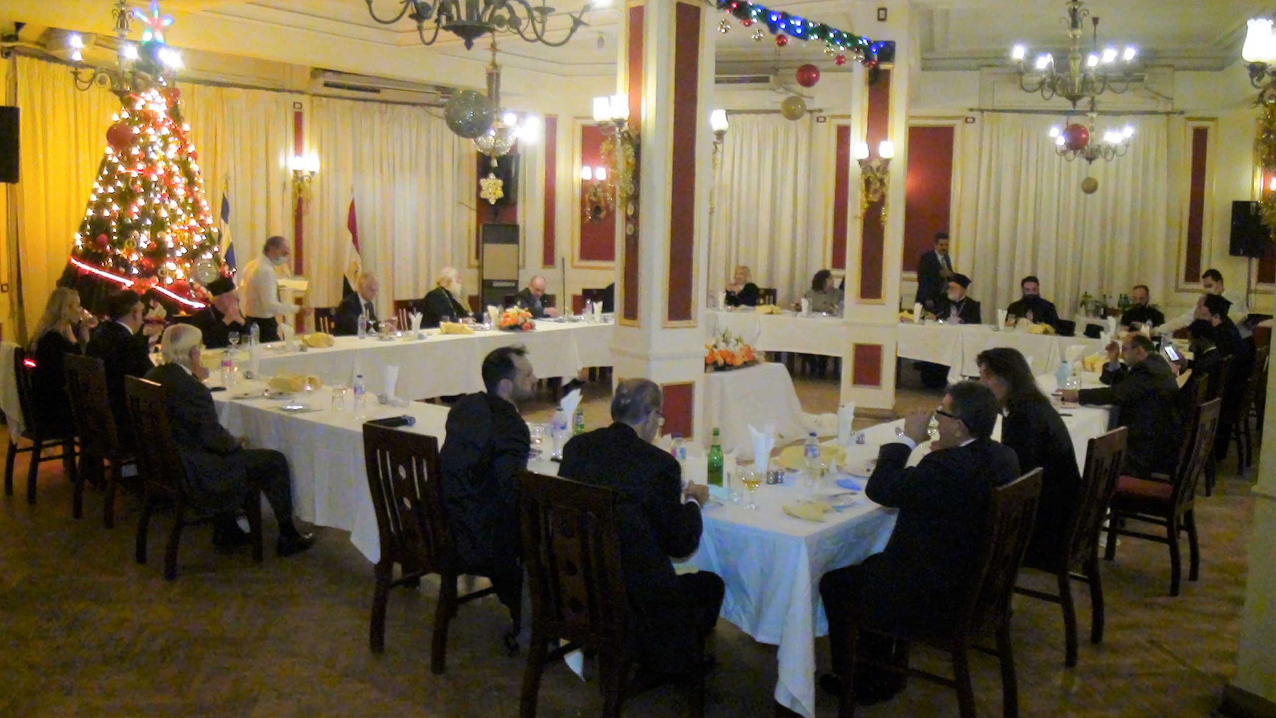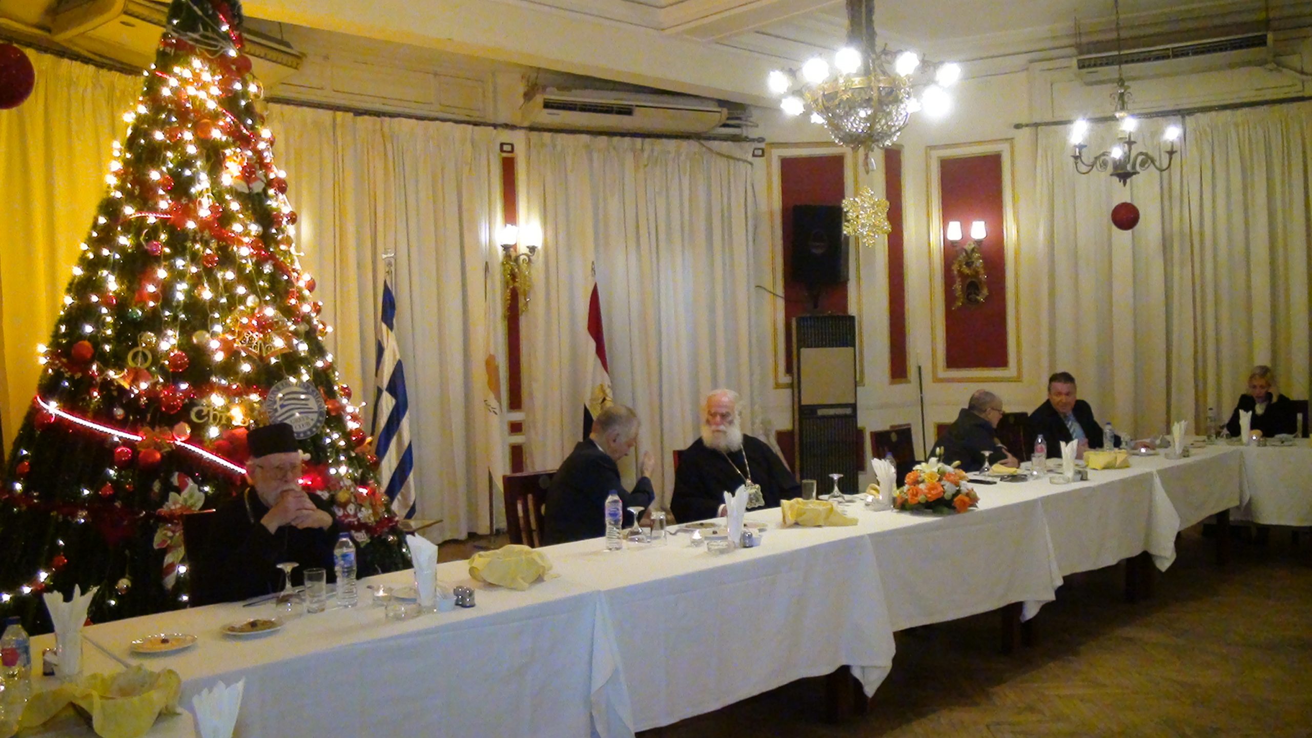 Μέσα σε ένα εορταστικό περιβάλλον, με το χριστουγεννιάτικο δέντρο να φτάνει όσο πιο ψηλά γίνεται, με τη μουσική να θυμίζει ότι η Χριστουγεννιάτικη περίοδος έχει ήδη ξεκινήσει, τον Μακαριώτατο Πατριάρχη Αλεξανδρείας κ. Θεόδωρο καλωσόρισε ο Αντιπρόεδρος του Ελληνικού Κέντρου Καΐρου κ. Νίκος Κάτσικας, ο οποίος μετέφερε τους χαιρετισμούς του Προέδρου του Κέντρου, Νικόλα Βαδή, που βρίσκεται αυτές τις ημέρες στην Αθήνα.