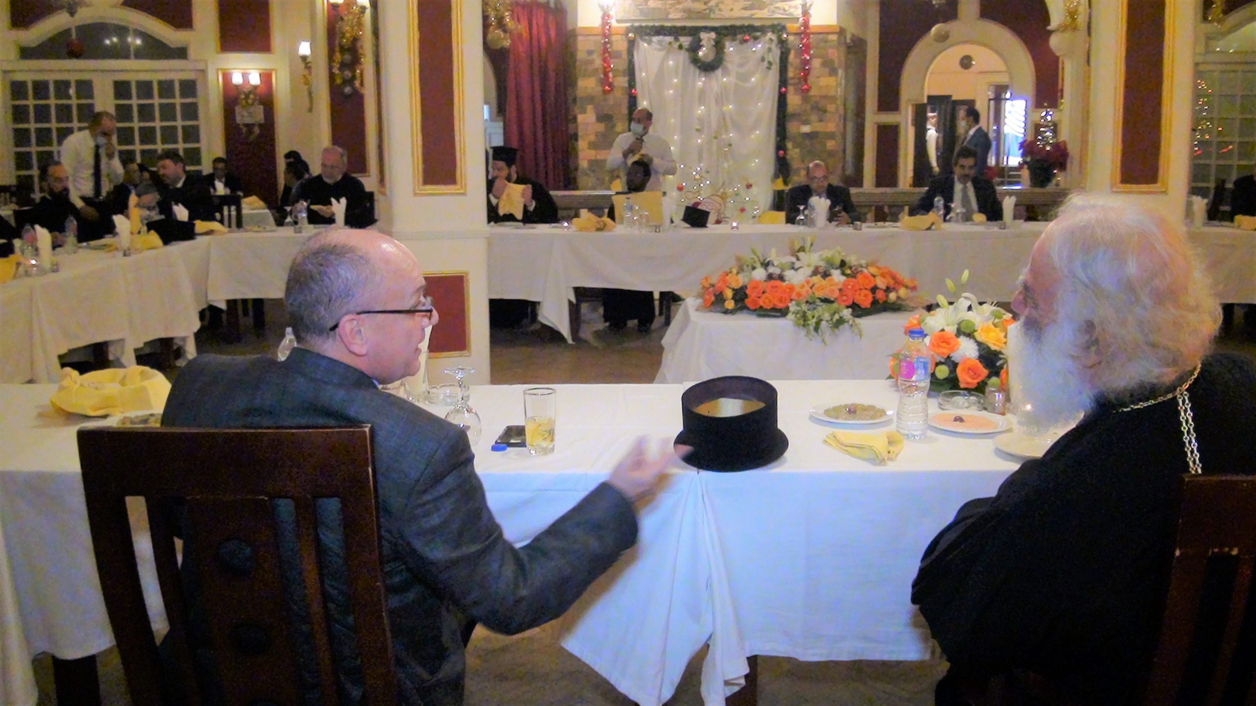 Από την πλευρά του, ο Αντιπρόεδρος του Κέντρου μετέφερε τους χαιρετισμούς του επίσης εορτάζοντα Προέδρου Νικόλα Βαδή. Με τον Πατριάρχη να ενθυμείται έναν άλλο Νικόλα, τον πρόσφατα αποβιώσαντα Νικόλα Πολίτη, που προσέφερε 22 χρόνια ως Πρόεδρος του Ελληνικού Κέντρου Καΐρου.
