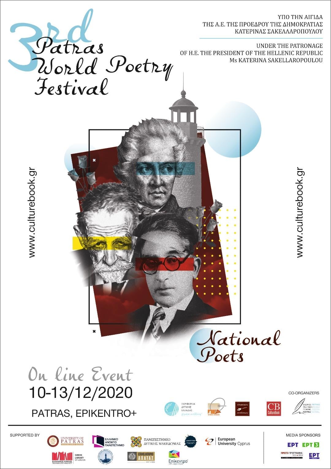 To 3ο Διεθνές Φεστιβάλ Ποίησης Πάτρας 2020 διοργανώνουν το «Γραφείον Ποιήσεως» και το λογοτεχνικό site «Culture Book» με τη συνεργασία της Περιφέρειας Δυτικής Ελλάδας και της Περιφερειακή Ένωση Δήμων Δυτικής Αχαΐας και υποστηρίζουν το Πανεπιστήμιο Δυτικής Μακεδονίας, το Πανεπιστήμιο Πατρών, το Ελληνικό Ανοικτό Πανεπιστήμιο, το Ευρωπαϊκό Πανεπιστήμιο Κύπρου, η Greek Library of London, καθώς και η Περιφερειακή Ένωση Δήμων Αχαΐας, το Επιμελητήριο Αχαΐας και ο Οργανισμός Λιμένα Πατρών.