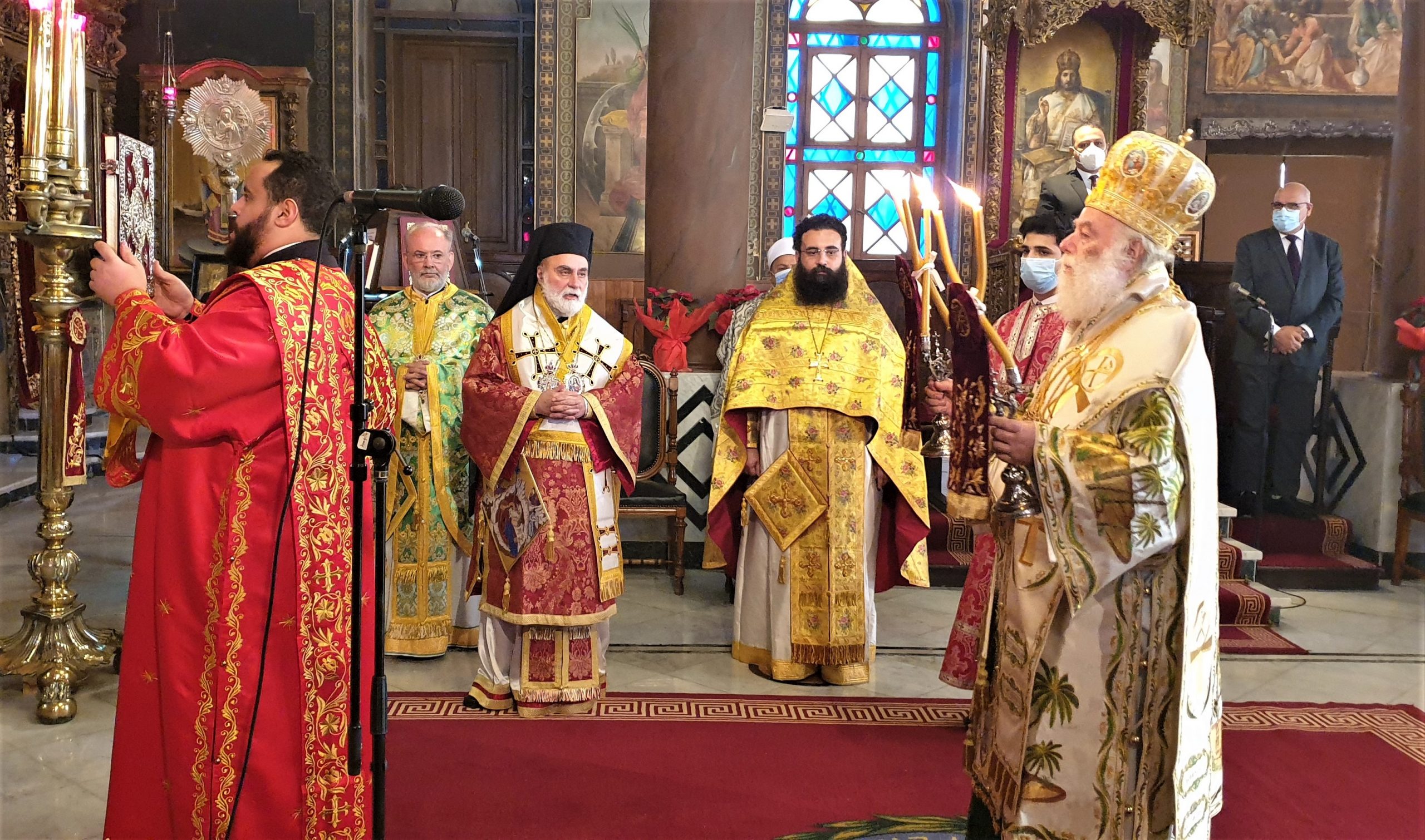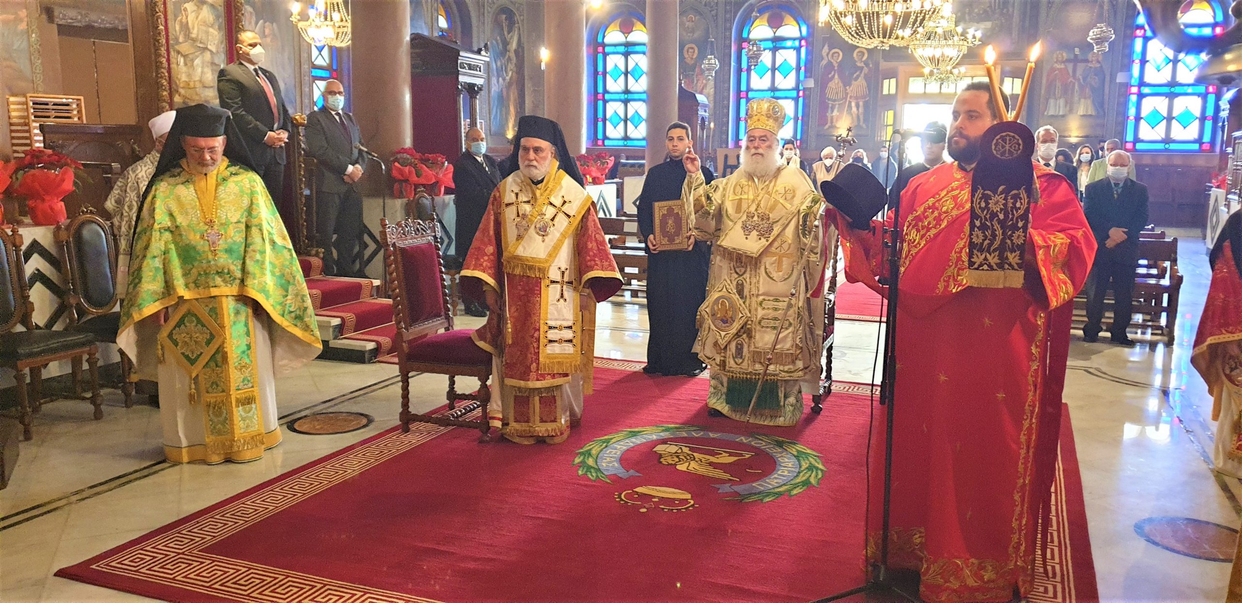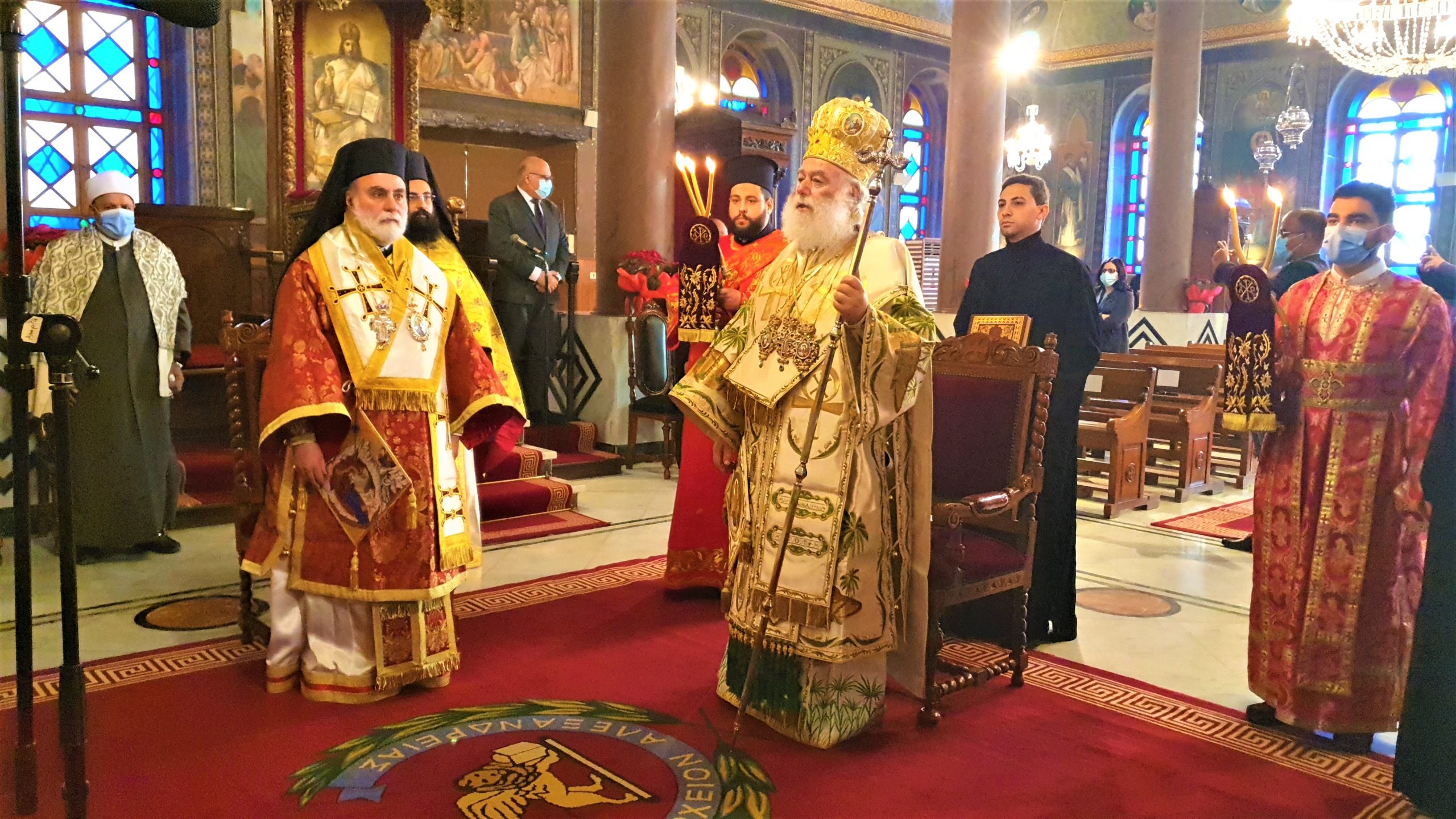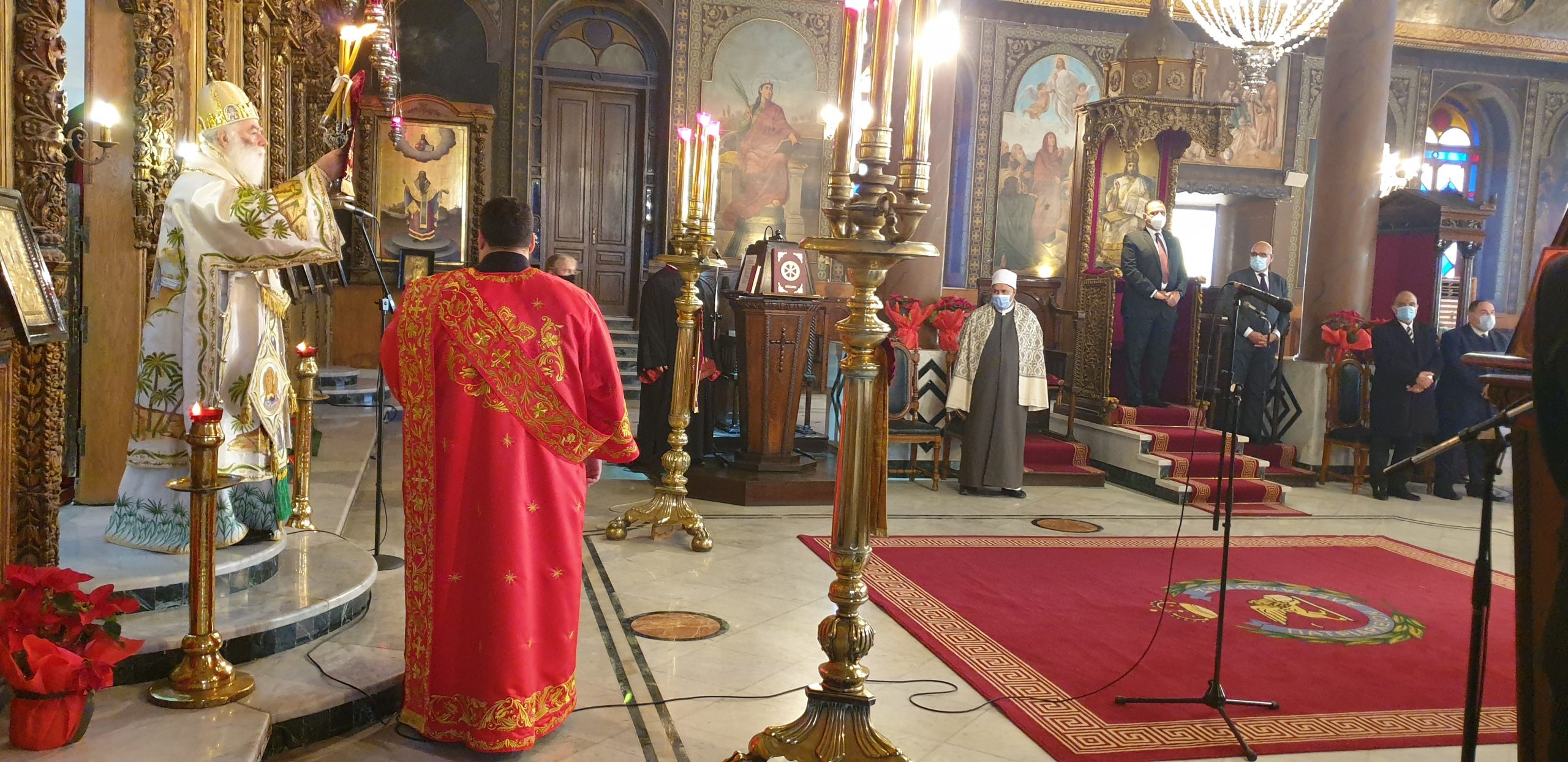 Στη Θεία Λειτουργία των Χριστουγέννων στο Κάιρο, όπου συμμετείχαν ο Πατριαρχικός Επίτροπος Καΐρου, Μητροπολίτης Μέμφιδος κ. Νικόδημος και συμπροσευχόμενος ο Πατριαρχικός Επίτροπος για τους αραβοφώνους Μητροπολίτης Ερμουπόλεως (Τάντας) κ. Νικόλαος καθώς και ο Καθηγούμενος της Ιεράς Μονής Αγίου Γεωργίου παλαιού Καΐρου π. Δαμασκηνού Αλαζράι, που μετέφρασε τα μηνύματα του Πατριάρχου προς τους επισήμους καθώς και ο Ιερός κλήρος, ενώ παραβρέθηκαν πολλοί εκπρόσωποι της παροικίας, τηρώντας πάντοτε όλα τα μέτρα για την αντιμετώπιση της παγκόσμιας πανδημίας.