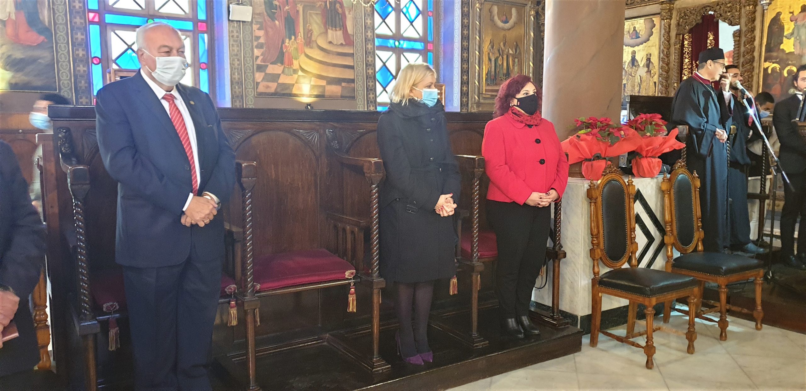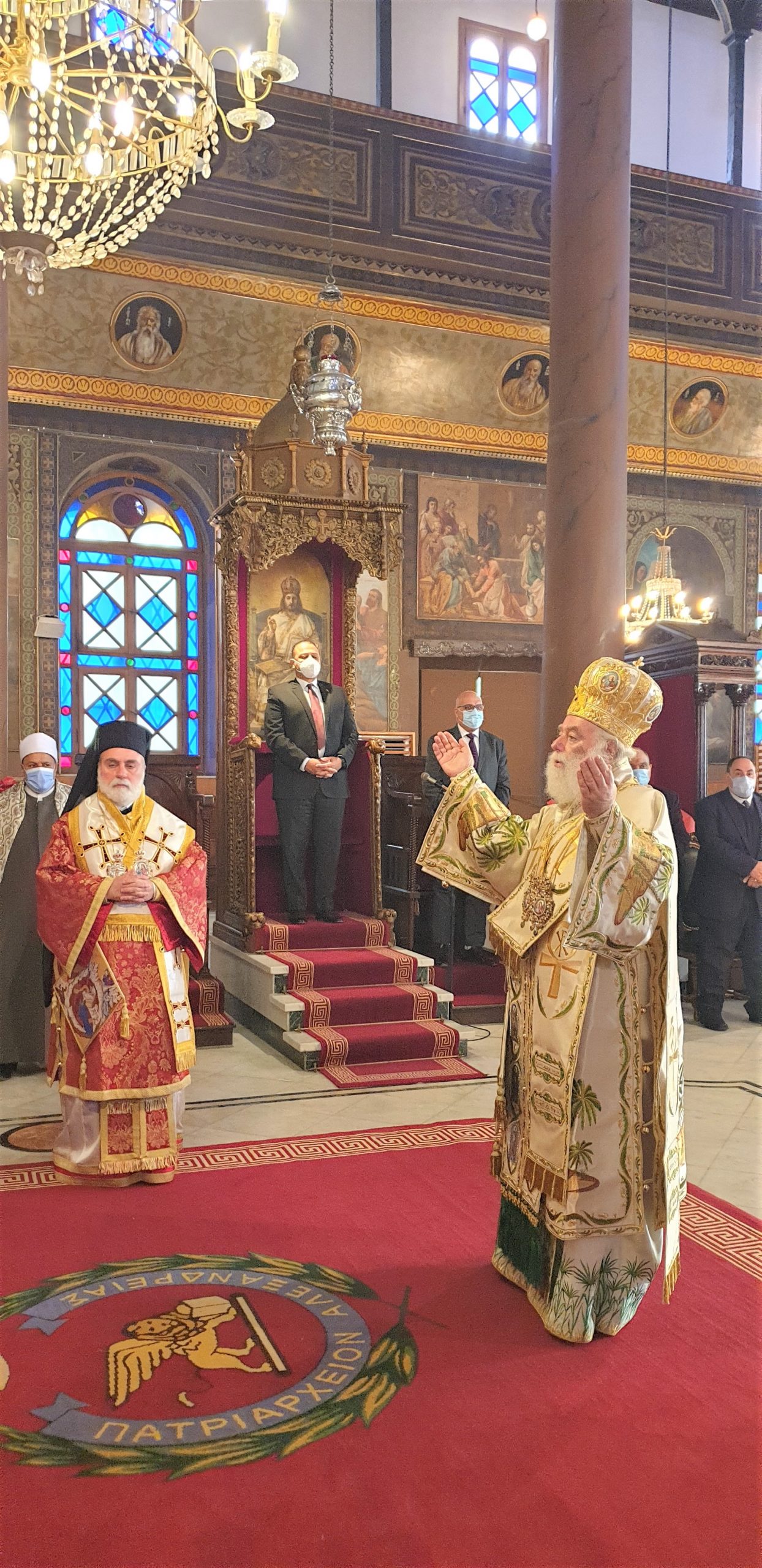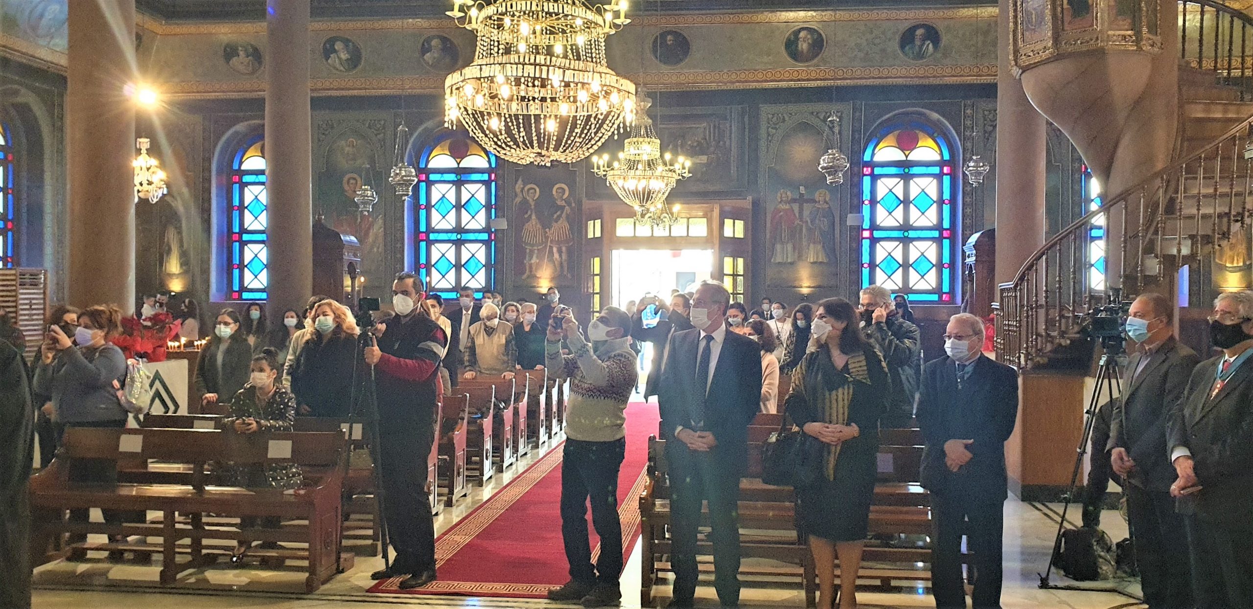 Στη Θεία Λειτουργία των Χριστουγέννων στο Κάιρο, όπου συμμετείχαν ο Πατριαρχικός Επίτροπος Καΐρου, Μητροπολίτης Μέμφιδος κ. Νικόδημος και συμπροσευχόμενος ο Πατριαρχικός Επίτροπος για τους αραβοφώνους Μητροπολίτης Ερμουπόλεως (Τάντας) κ. Νικόλαος καθώς και ο Καθηγούμενος της Ιεράς Μονής Αγίου Γεωργίου παλαιού Καΐρου π. Δαμασκηνού Αλαζράι, που μετέφρασε τα μηνύματα του Πατριάρχου προς τους επισήμους καθώς και ο Ιερός κλήρος, ενώ παραβρέθηκαν πολλοί εκπρόσωποι της παροικίας, τηρώντας πάντοτε όλα τα μέτρα για την αντιμετώπιση της παγκόσμιας πανδημίας.