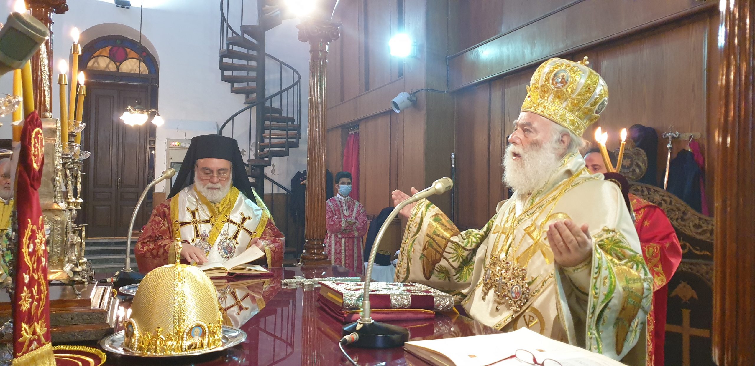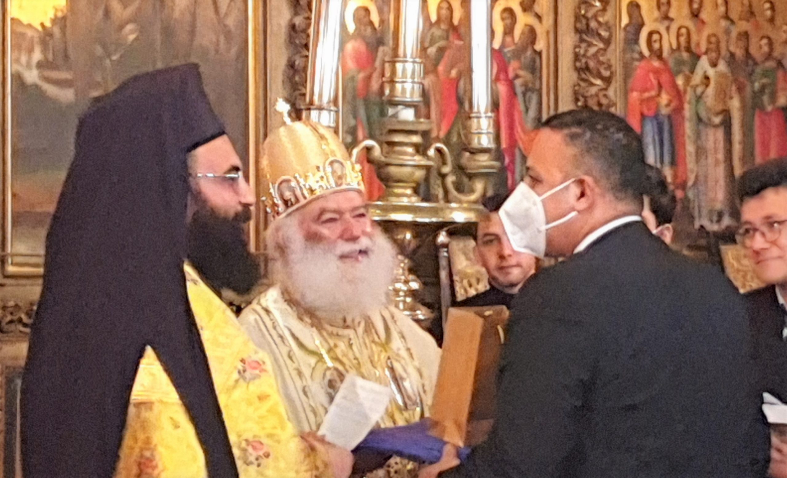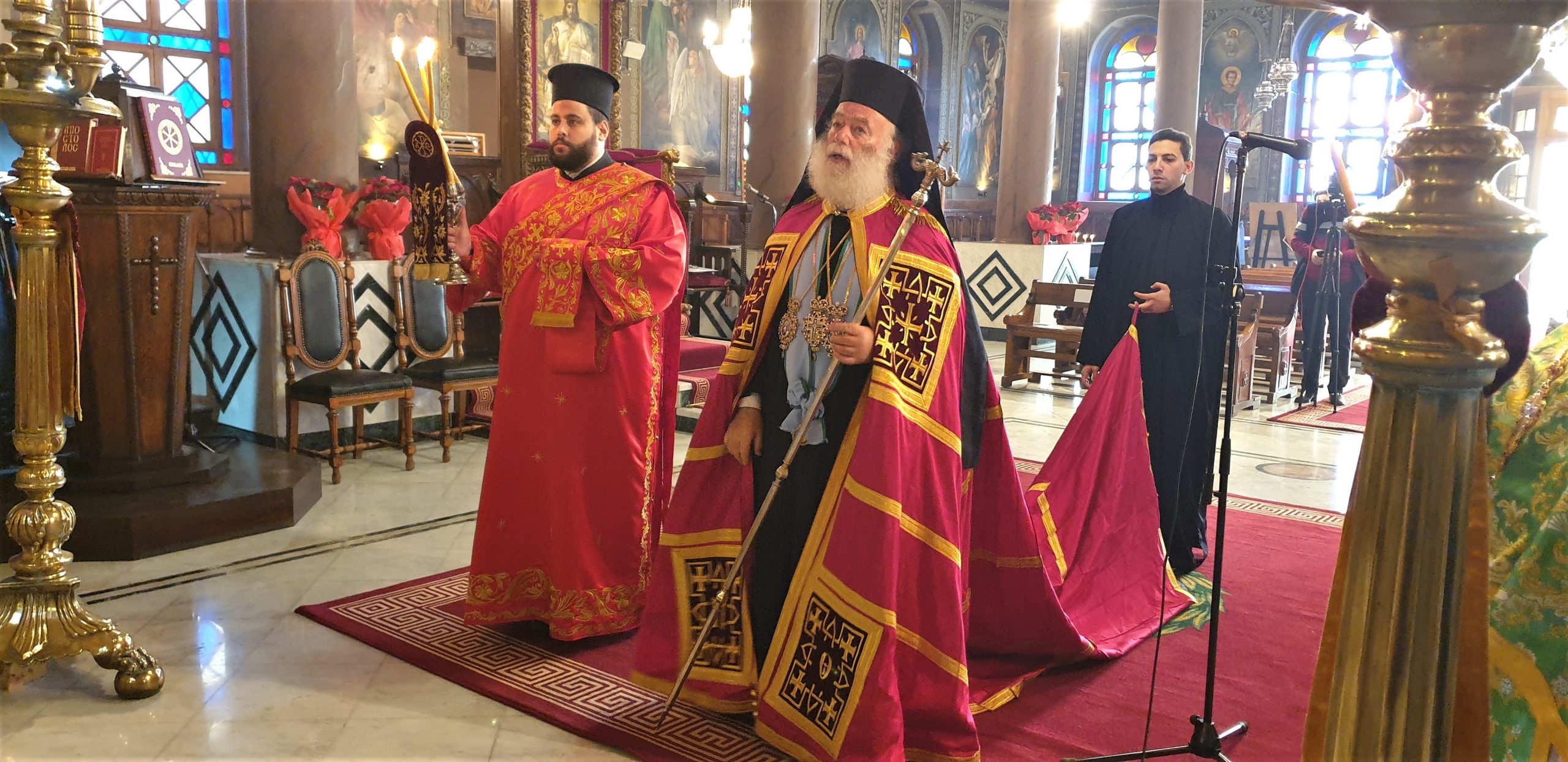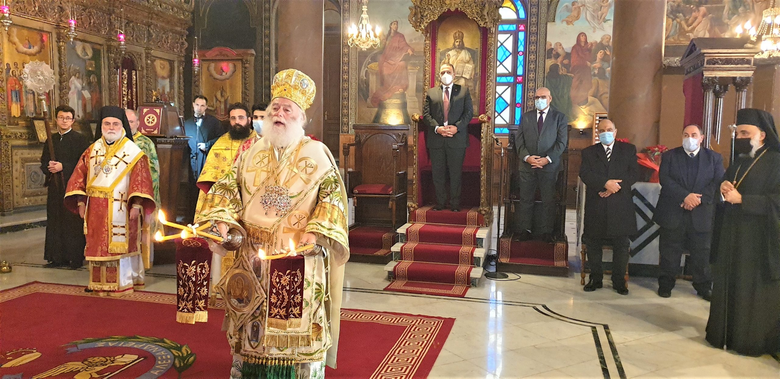 Στη Θεία Λειτουργία των Χριστουγέννων στο Κάιρο, όπου συμμετείχαν ο Πατριαρχικός Επίτροπος Καΐρου, Μητροπολίτης Μέμφιδος κ. Νικόδημος και συμπροσευχόμενος ο Πατριαρχικός Επίτροπος για τους αραβοφώνους Μητροπολίτης Ερμουπόλεως (Τάντας) κ. Νικόλαος καθώς και ο Καθηγούμενος της Ιεράς Μονής Αγίου Γεωργίου παλαιού Καΐρου π. Δαμασκηνού Αλαζράι, που μετέφρασε τα μηνύματα του Πατριάρχου προς τους επισήμους καθώς και ο Ιερός κλήρος, ενώ παραβρέθηκαν πολλοί εκπρόσωποι της παροικίας, τηρώντας πάντοτε όλα τα μέτρα για την αντιμετώπιση της παγκόσμιας πανδημίας.