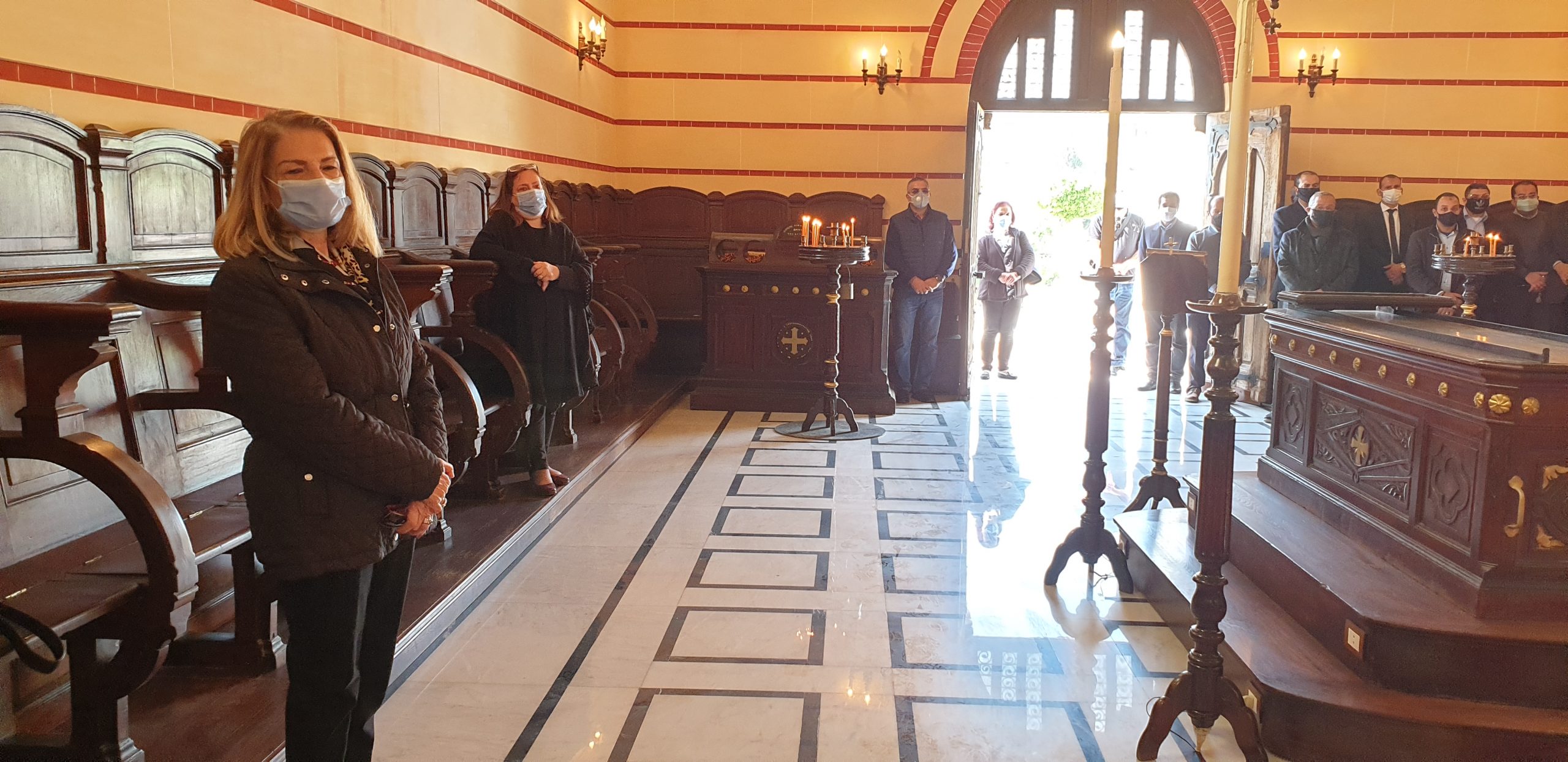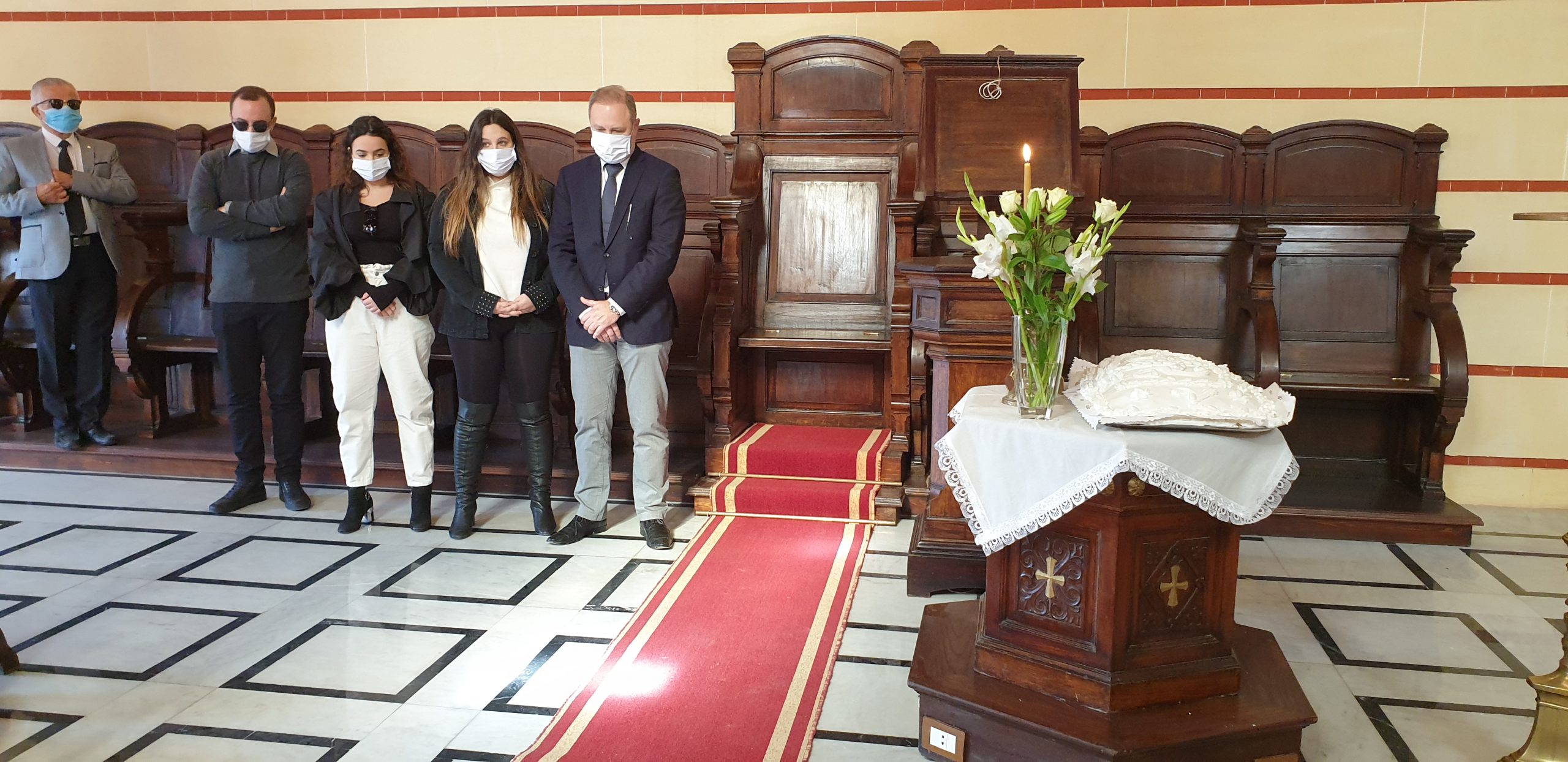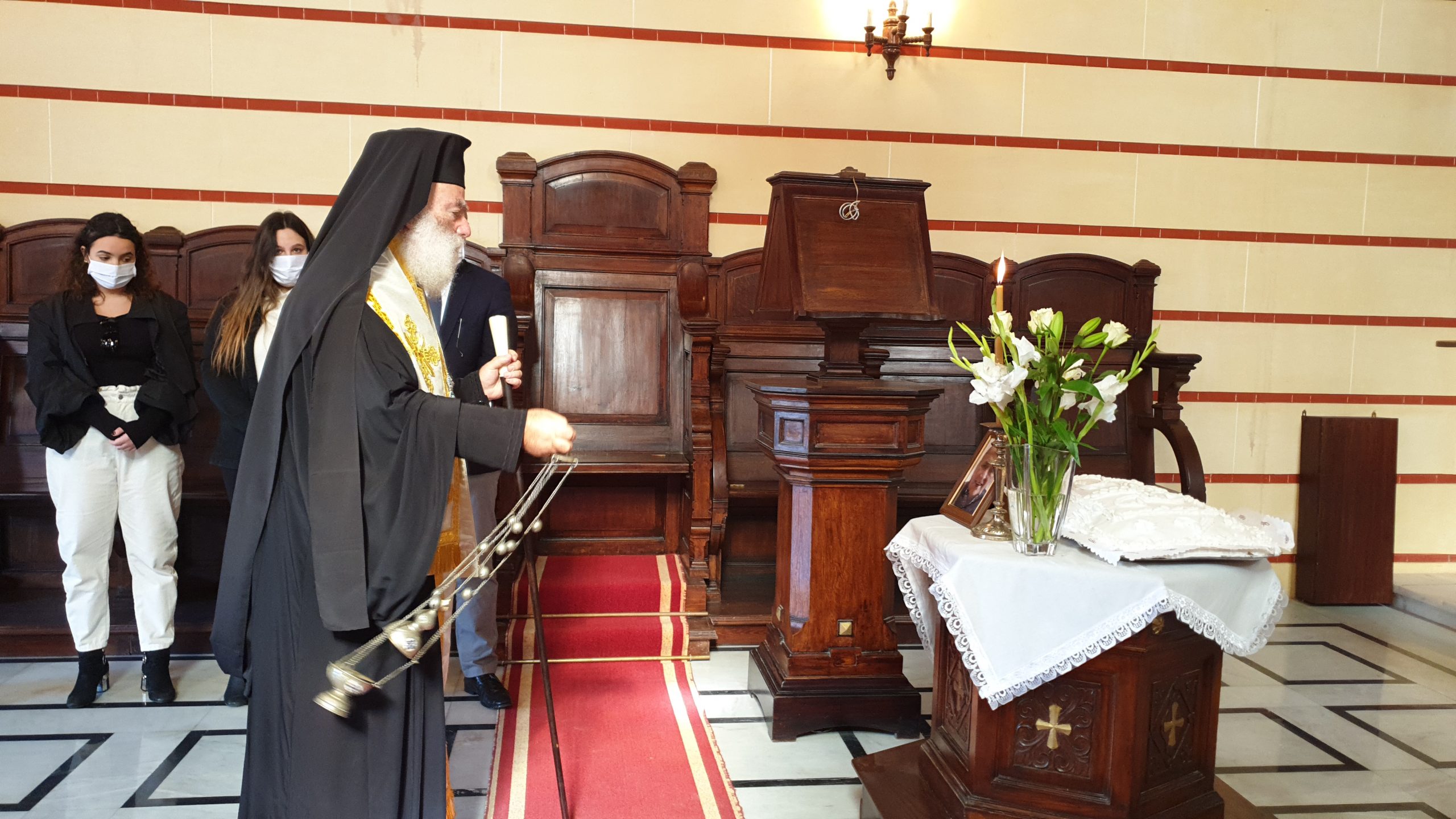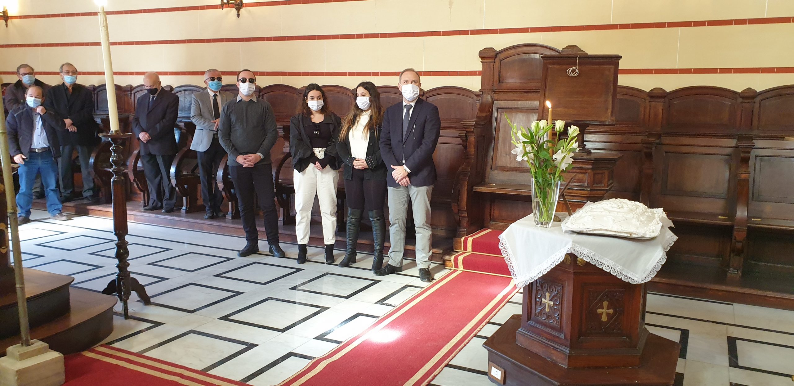 Στο πλευρό του κ. Ι. Σιόκα, η σύζυγός του Ελένη και τα τρία παιδιά του, τα εγγόνια του Γεωργίου Σιόκα, να κοιτάνε την φωτογραφία του παππού τους, στο μνημόσυνο που τελούσε ο Πατριάρχης Θεόδωρος, παρουσία πολλών παροίκων και μεταξύ αυτών, μελών της Κοινοτικής Επιτροπής. Ήταν εκεί να συμπαρασταθούν στην οικογένεια και τον Πρόεδρο της ΕΚΑ, ο Α΄ Αντιπρόεδρος της Κοινότητας κ. Ανδρέας Βαφειάδης, η Β΄ Αντιπρόεδρος κα Μαίρη Παυλίδου και ο Οικονομικός Επόπτης κ. Πάρης Πεφάνης Μακρής, καθώς επίσης και η Πρόεδρος του Ελληνικού Ναυτικού Ομίλου Αλεξανδρείας και του «Πτολεμαίου» κα Λιλίκα Θλιβίτου, ο Πρόεδρος του Ελληνικού Εμπορικού Επιμελητηρίου Αλεξανδρείας κ. Βύρων Βαφειάδης, ο Έφορος Προσκόπων κ. Άρης Μαρκοζάνης, ο πρώην Αντιπρόεδρος της ΕΚΑ κ. Δημήτρης Βαφειάδης και άλλοι επίσημοι.
